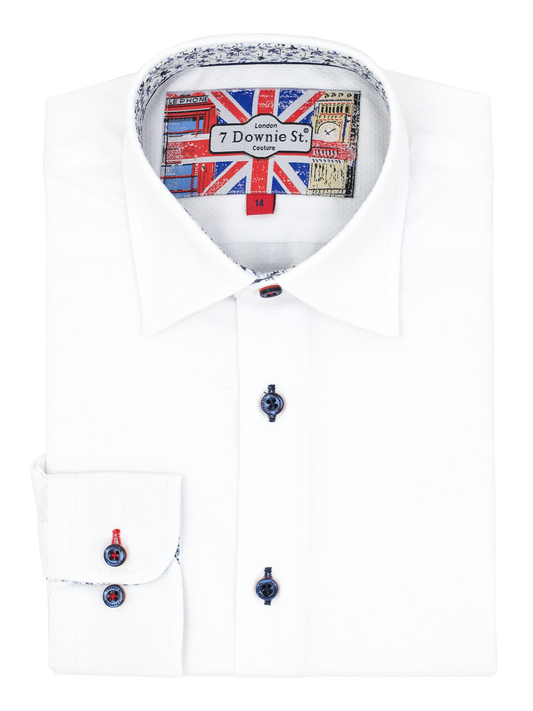 7 Downie St. 39178 Boy's Long Sleeve Sport Shirt - Tonal - White