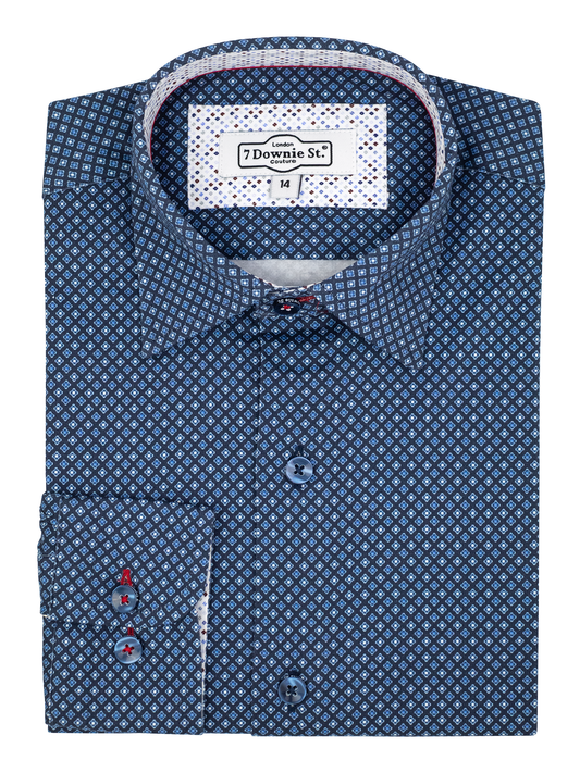 7 Downie St. 39240 Boy's Long Sleeve Sport Shirt - Neat - Blue