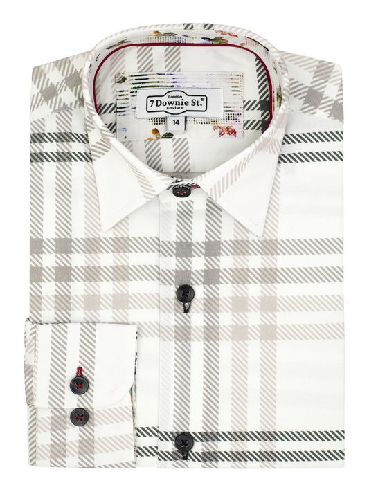 7 Downie St. 39258 Boy's Long Sleeve Sport Shirt - Plaid - White/Beige