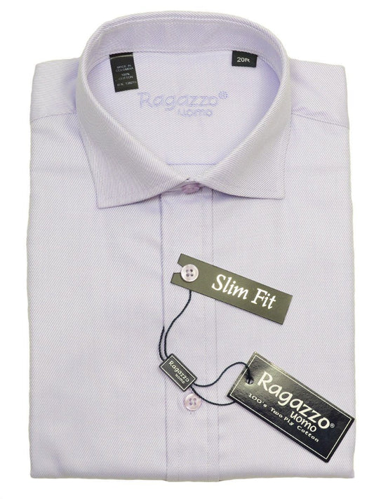 Ragazzo 14092 100% Cotton Boy's Slim Fit Dress Shirt - Tonal Diagonal Weave - Lavender, English (or Modified) Spread Collar