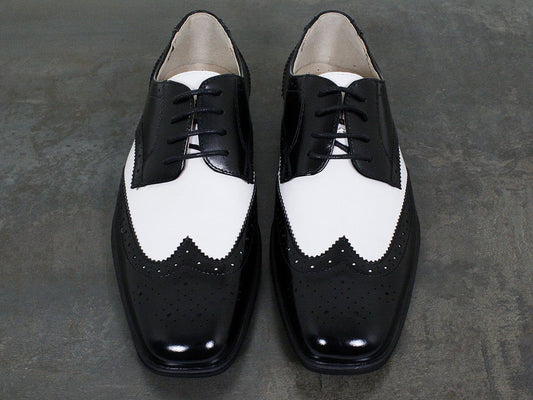 Florsheim 22497 Leather Boy's Shoe - Two Tone Wing Tip - Black And White