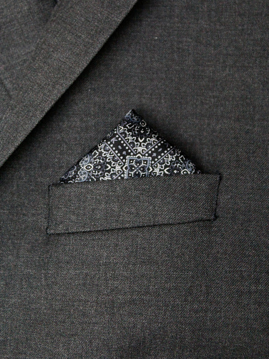 Heritage House Pocket Square 35278 - Floral - Black/Grey