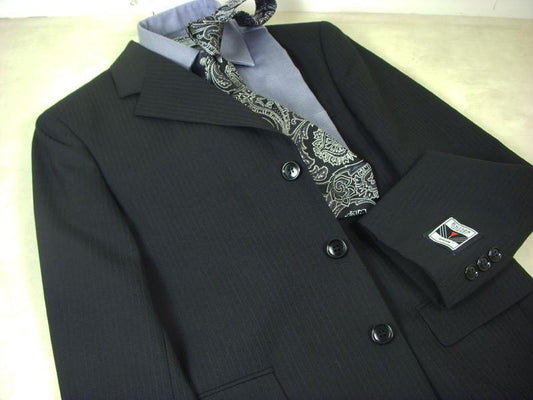 Europa 127 55% Polyester / 45% Wool Boy's Suit - Striped - Black