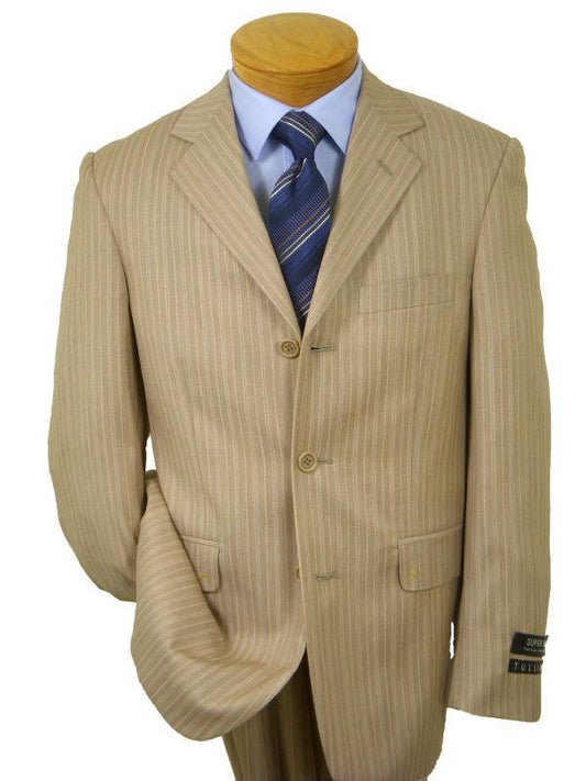 Tulliano 152 100% Wool Boy's Suit - Stripe - Camel