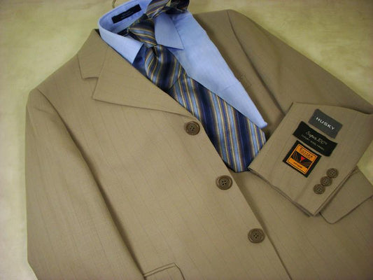 Princeton 581 100% Wool Boy's Suit - Stripe - Tan
