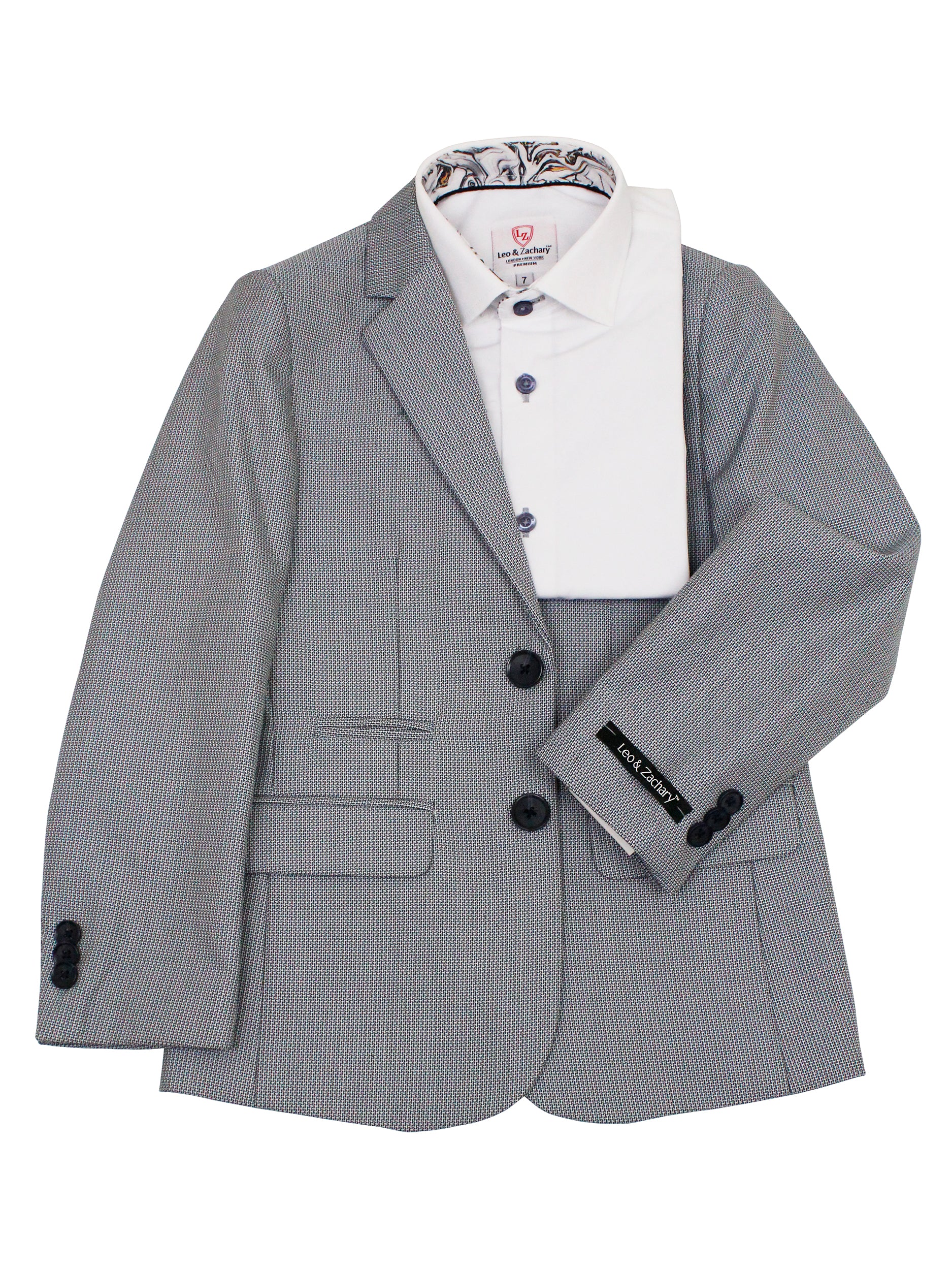 Features of the Leo & Zachary 35572 Boy's Suit Separate - Suit Separate Jacket - Grey/Navy: