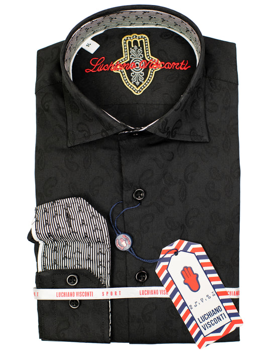 Luchiano Visconti Boy's Sport Shirt 30117 - Tonal Paisley - Black