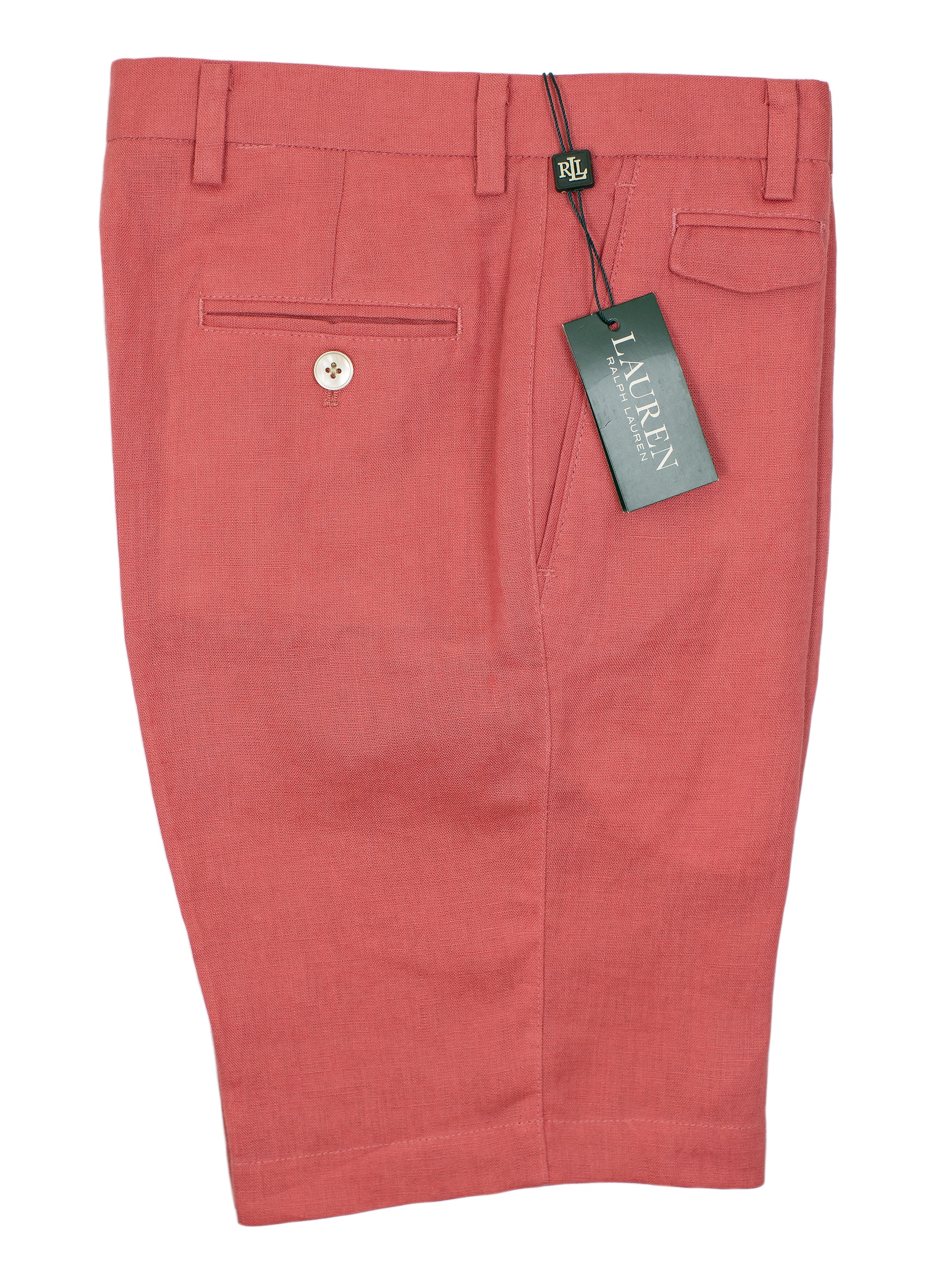 A Boys Short by Lauren Ralph Lauren will make your boy feel confident. It will let him  show off his sophisticated side. The 28312S Nantucket Red Boys Short is 100% Linen, in a Nantucket Red color, comfortable for all day use. The plain front short has quarter top pockets, a single change pocket, and one besom button thru back pocket. Matches perfectly the Lauren Ralph Lauren Suit Separate Jacket (sold separately). Dry Clean Only.