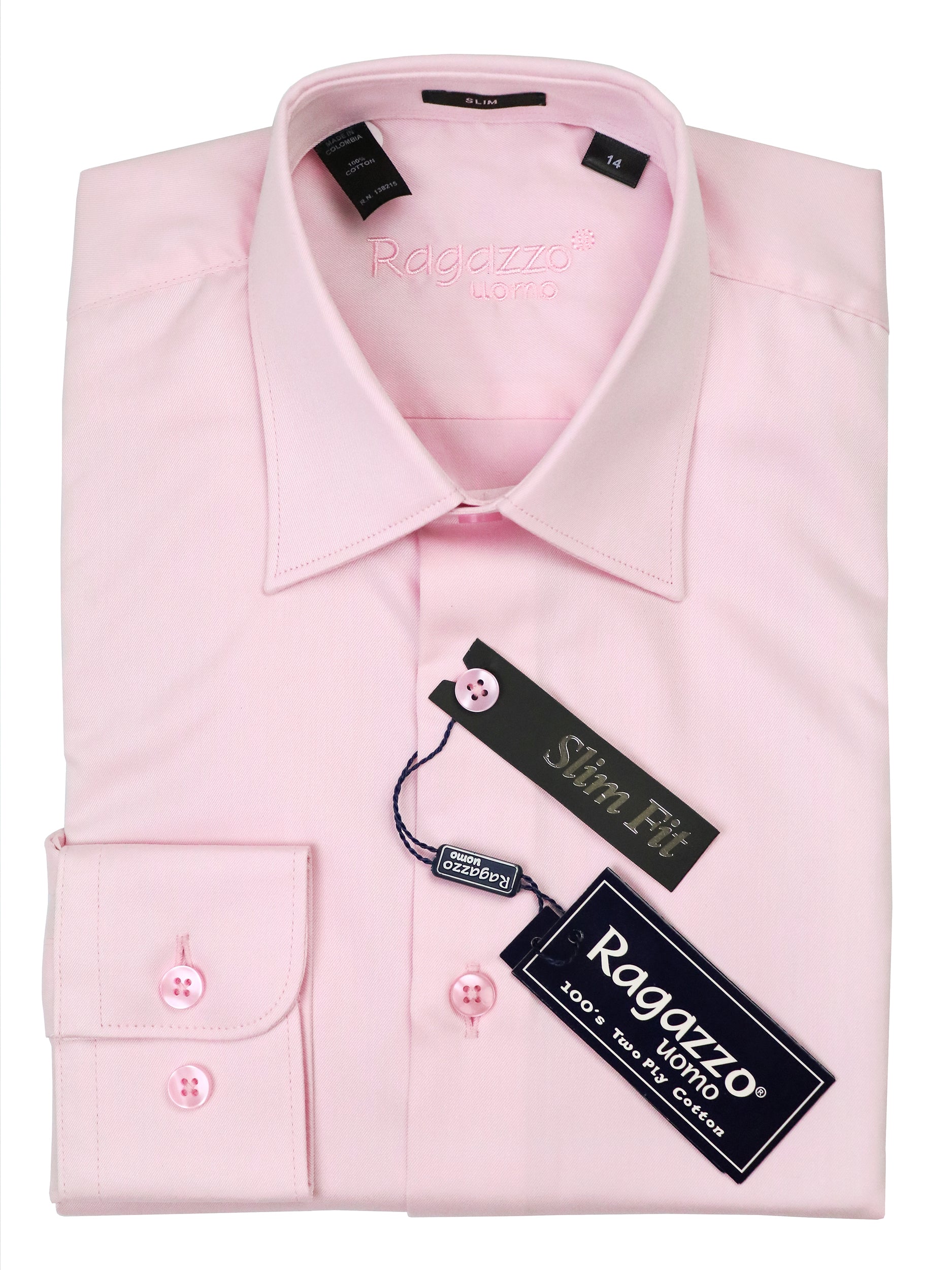 Features of the Ragazzo 37540 Boy's Dress Shirt - Twill - Light Pink: