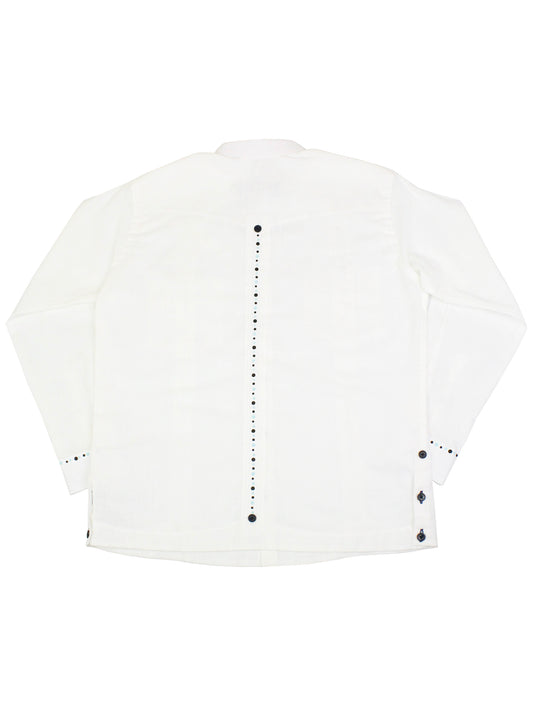 Heritage House Boy's Sports Shirt - Guayabera - White/Navy