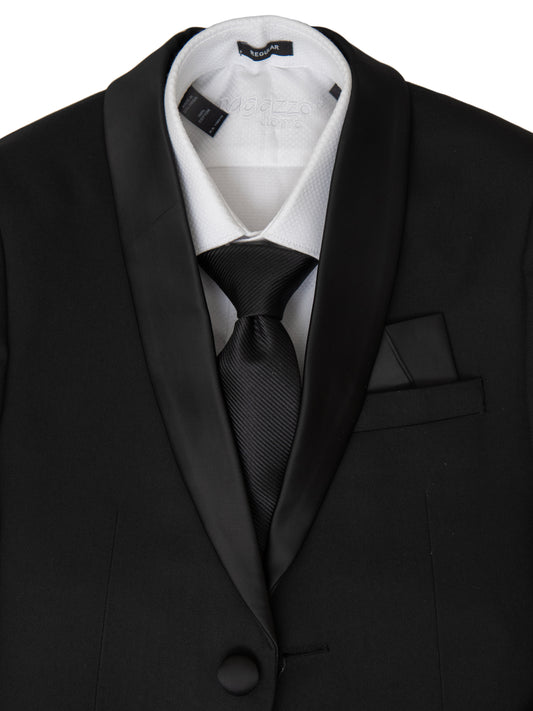 Leo & Zachary 36302 Boy's Skinny Fit Tuxedo - Shawl Collar - Solid - Black