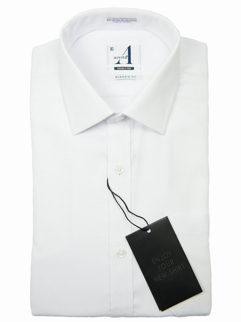 Features of the Alviso 25985 60% Cotton/ 40% Polyester Boy's Dress Shirt - Tonal Weave - White- Breathable 60% cotton/ 40% polyester fabric