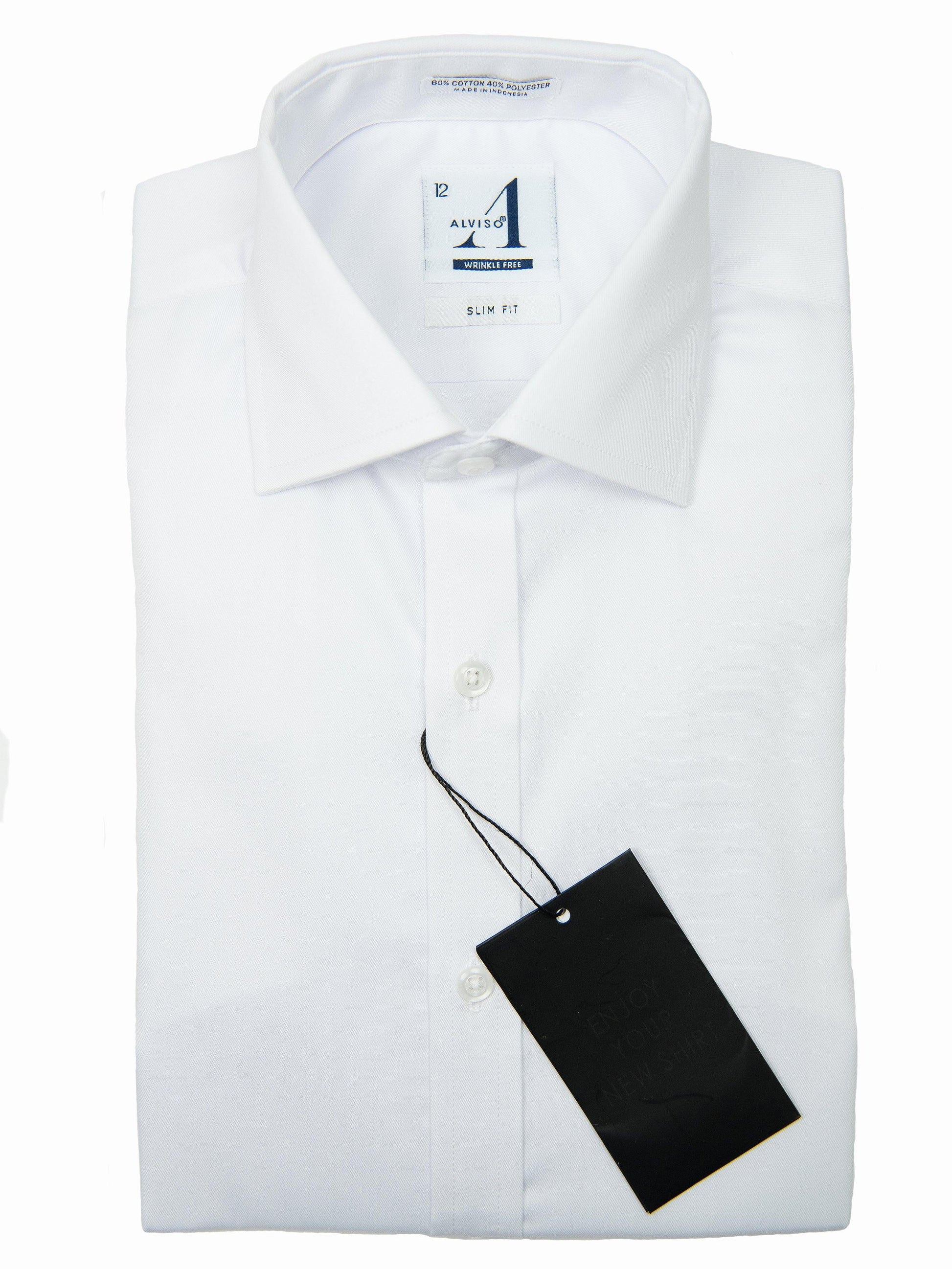 Alviso 28144 60% Cotton/40% Polyester Boy's Dress Shirt - Solid Gab - White, Slim Fit