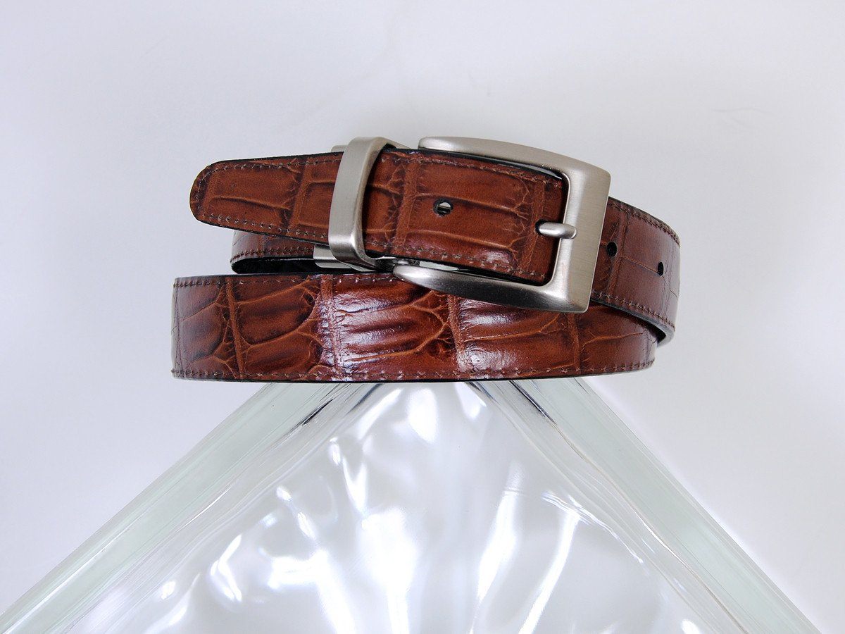 Features of the Brighton 18234 100% Leather Boy's Belt - Crocodile Finish - Brown/black- Silver buckle