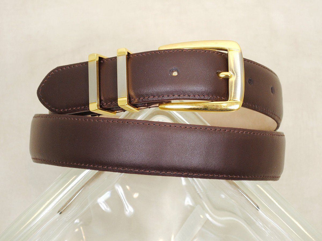 B/Master 16706 Genuine leather Boy's Belt - Smooth leather finish - Brown, Two-tone Gold/Silver Buckle