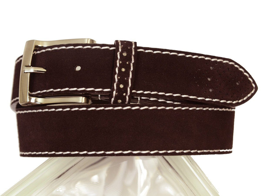 Florsheim 20302 100% Suede Leather With White Contrast Stitching Boy's Belt - Perforated Tip - Chocolate
