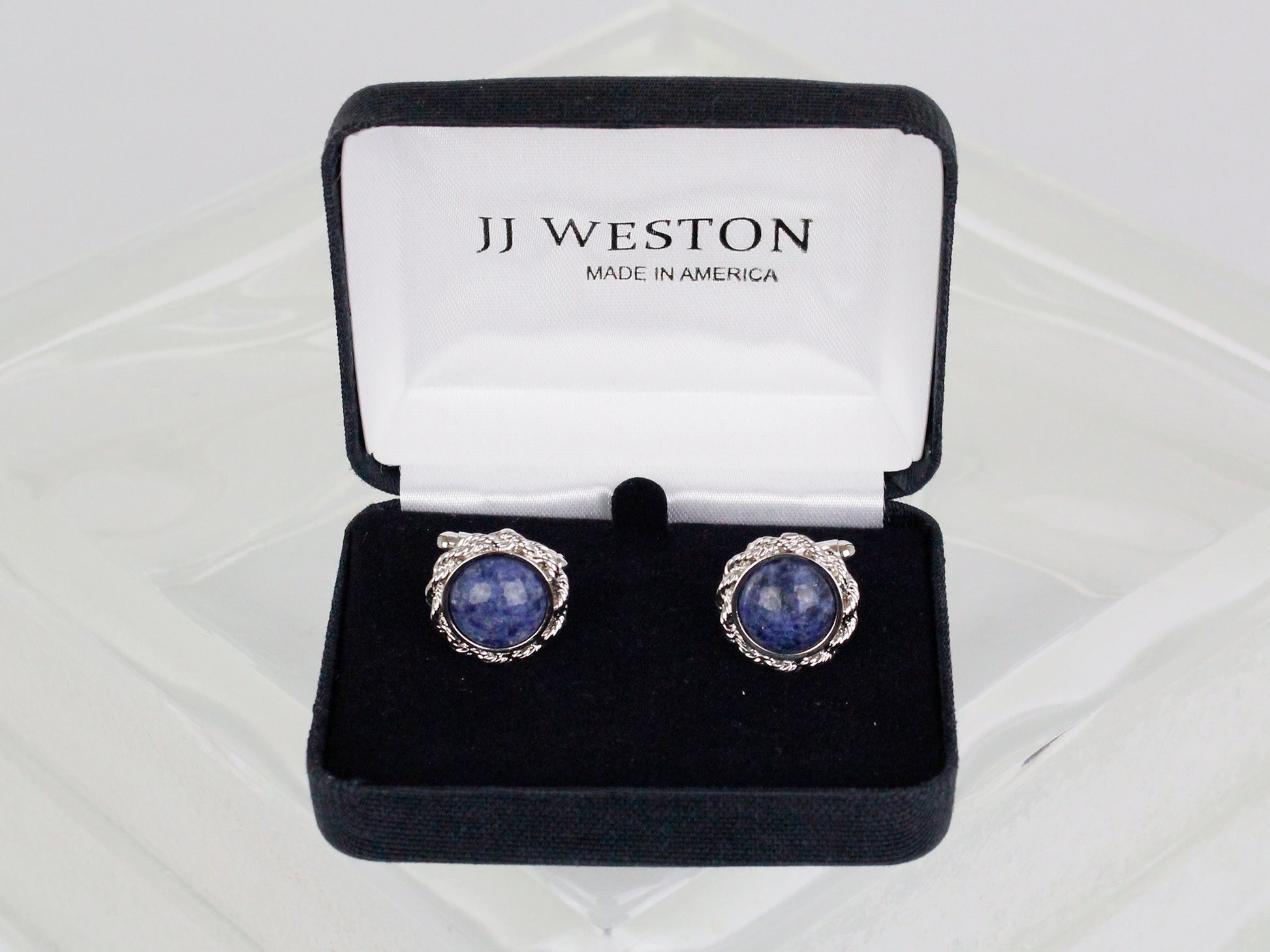 JJ Weston 34217 Cufflinks - Rope Edge - Silver Sodalite