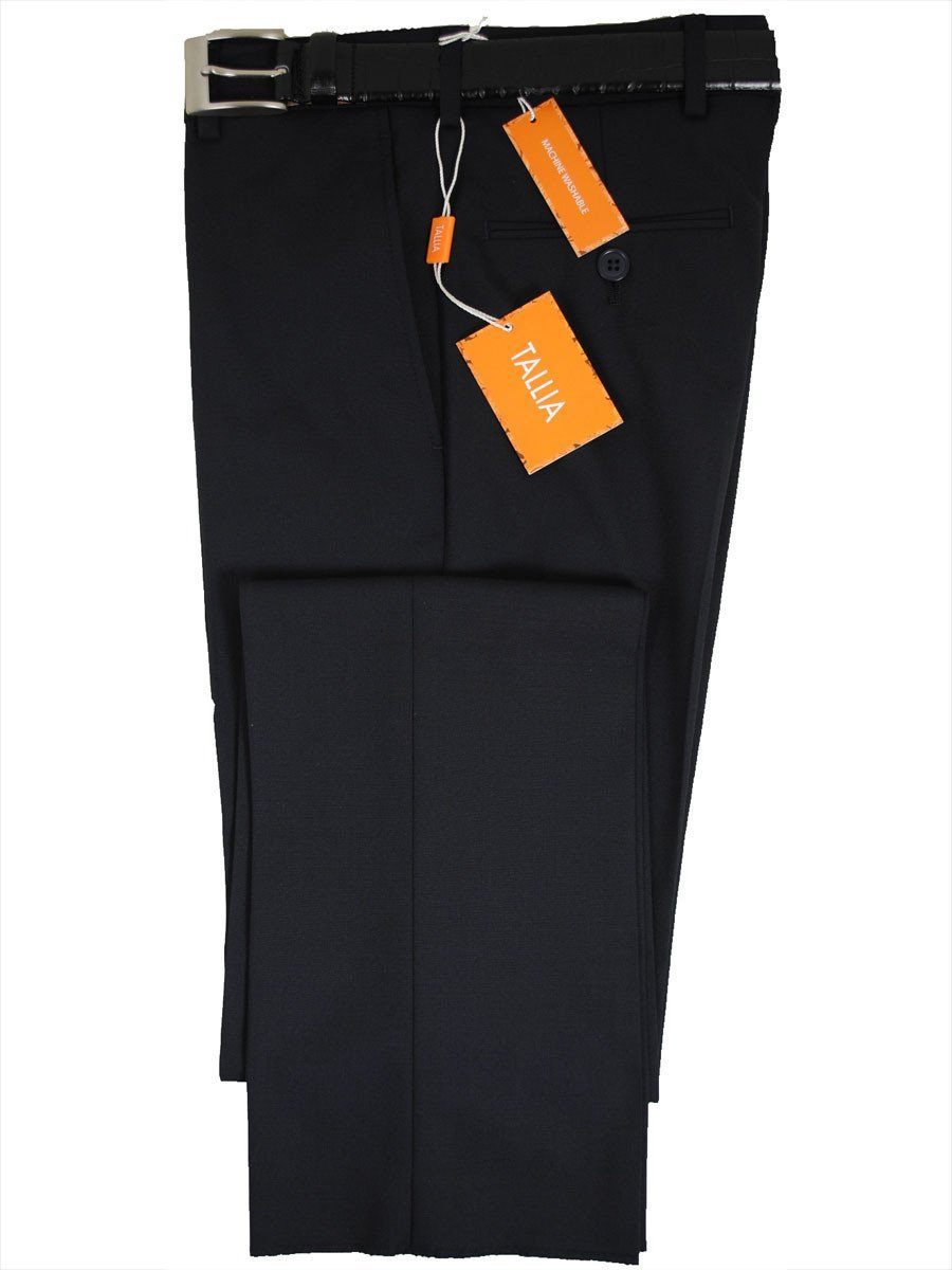For the boy who looks impeccable, with timeless style, Tallia dress pants are just the thing. He will look unforgettable, and polished in a pair of Tallia 14354 57% Polyester / 41% Wool / 2% Lycra Boy's Dress Pants. Offered in a solid navy color, they feature a textured blend of 57% Polyester / 41% Wool / 2% Lycra. In a plain front, with skinny leg, short rise, and contemporary fit, he will look flawless, and make a confident statement. Quarter top pockets, and twobutton through besom back pocket offers added convenience. An easy alteration design ensures he will remain presentable, even if he grows just before an important function. Machine washable. Typically 1 size larger is best. Imported by Tallia, a trendsetter in men's fashion across the globe.