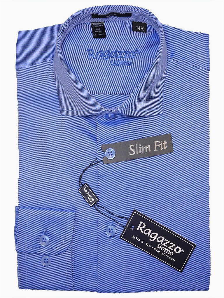 Ragazzo 15919 French Blue Slim Fit Boy's Dress Shirt - Diagonal Tonal Weave - 100% Cotton - English Spread Collar - Button Cuff