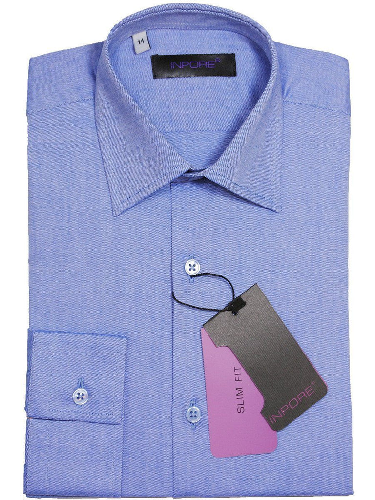 Inpore 16838 100% Cotton Boy's Dress Shirt - Weave - Blue, Contemporary Slim Fit
