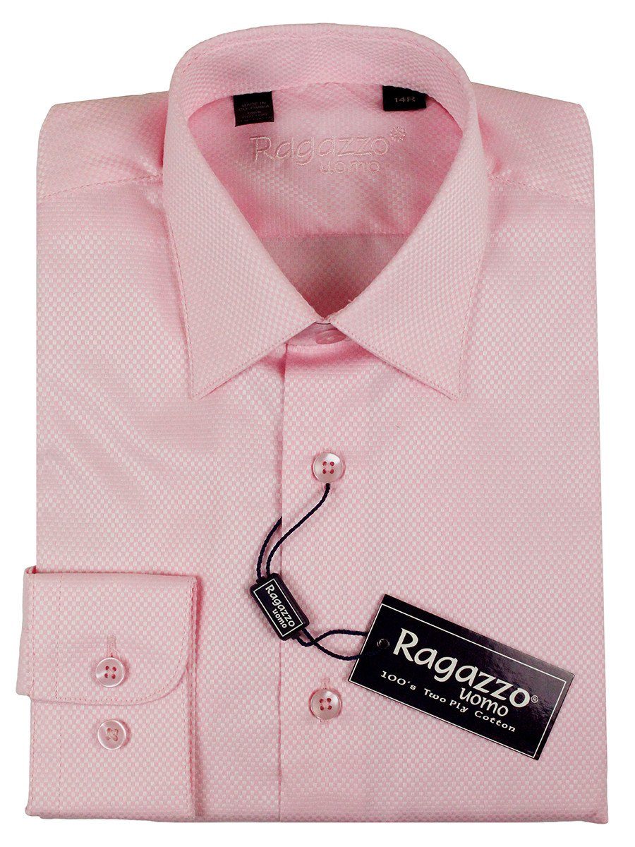 If your youth likes to be bold or standing out in the crowd, but you want a more charming look, the Ragazzo 23617 100% Cotton Boy's Dress Shirt is an ideal compromise. The modified spread collar, button cuff, and color keyed buttons for a low-key and classy style. Easily cared for, it is machine washable and easy iron.