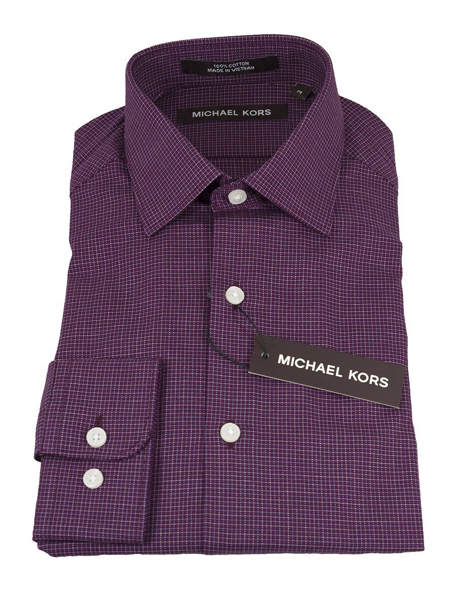 Michael Kors 25314 100% Cotton Boy's Dress Shirt - Check - Burgundy, Modified Spread Collar