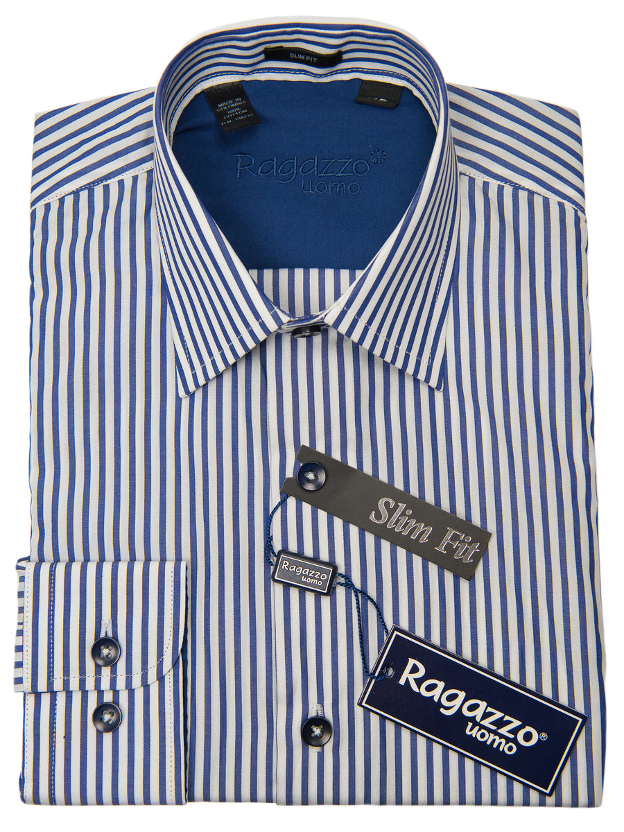 Ragazzo 28644 Boy's Dress Shirt - Slim Fit- Stripe - Royal Blue