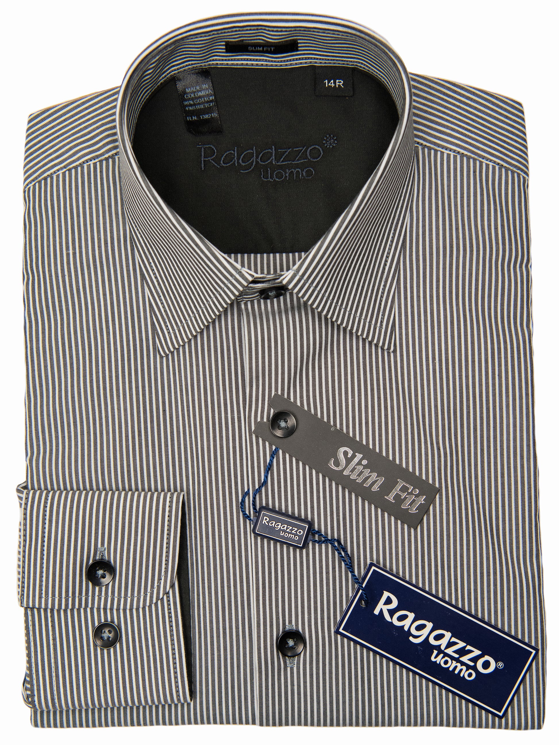 Ragazzo 28651 Boy's Dress Shirt - Slim Fit- Stripe - Black