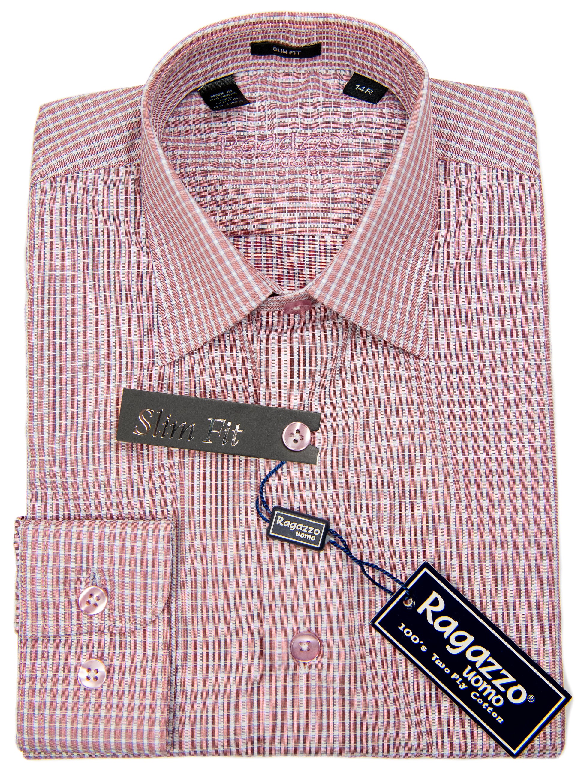Features of the Ragazzo 29795 100% Cotton Boy's Dress Shirt - Check - Red, Slim Fit- Durable 100% Cotton fabric