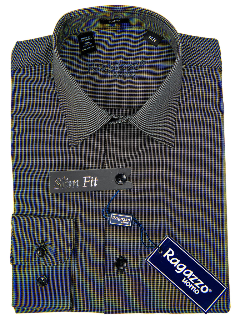 Features of the Ragazzo 29803 100% Cotton Boy's Dress Shirt - Check - Black, Slim Fit- Durable 100% cotton fabric
