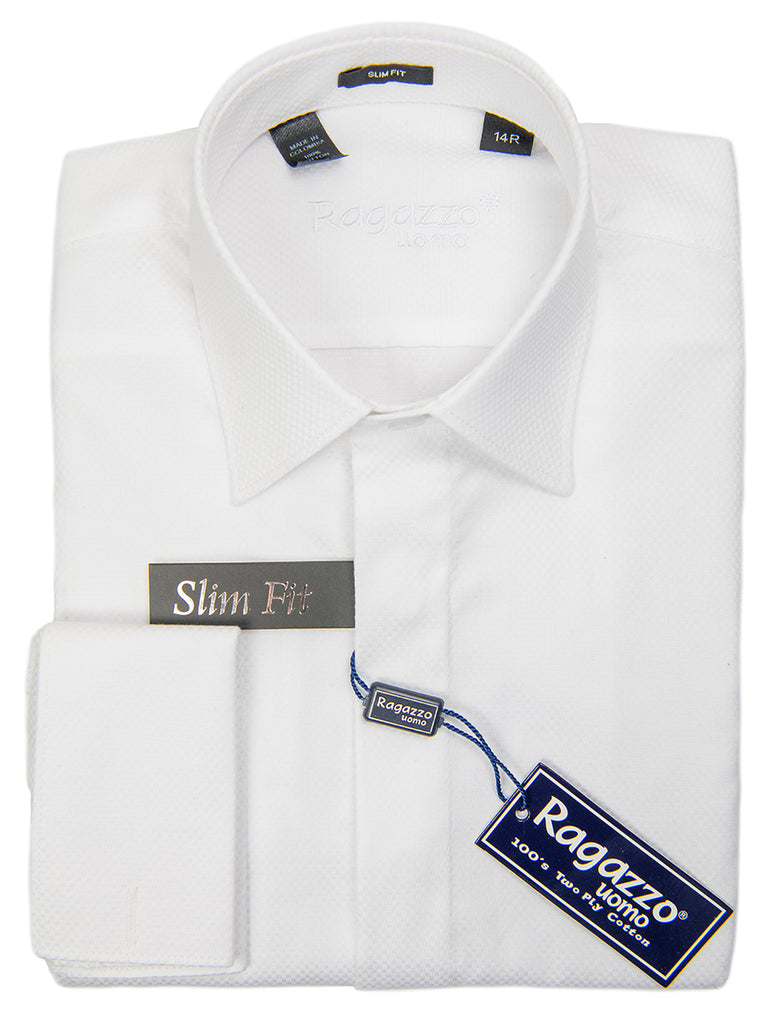 Ragazzo 29820 Boy's Dress Shirt - French Cuff - Slim Fit - Box Weave - White