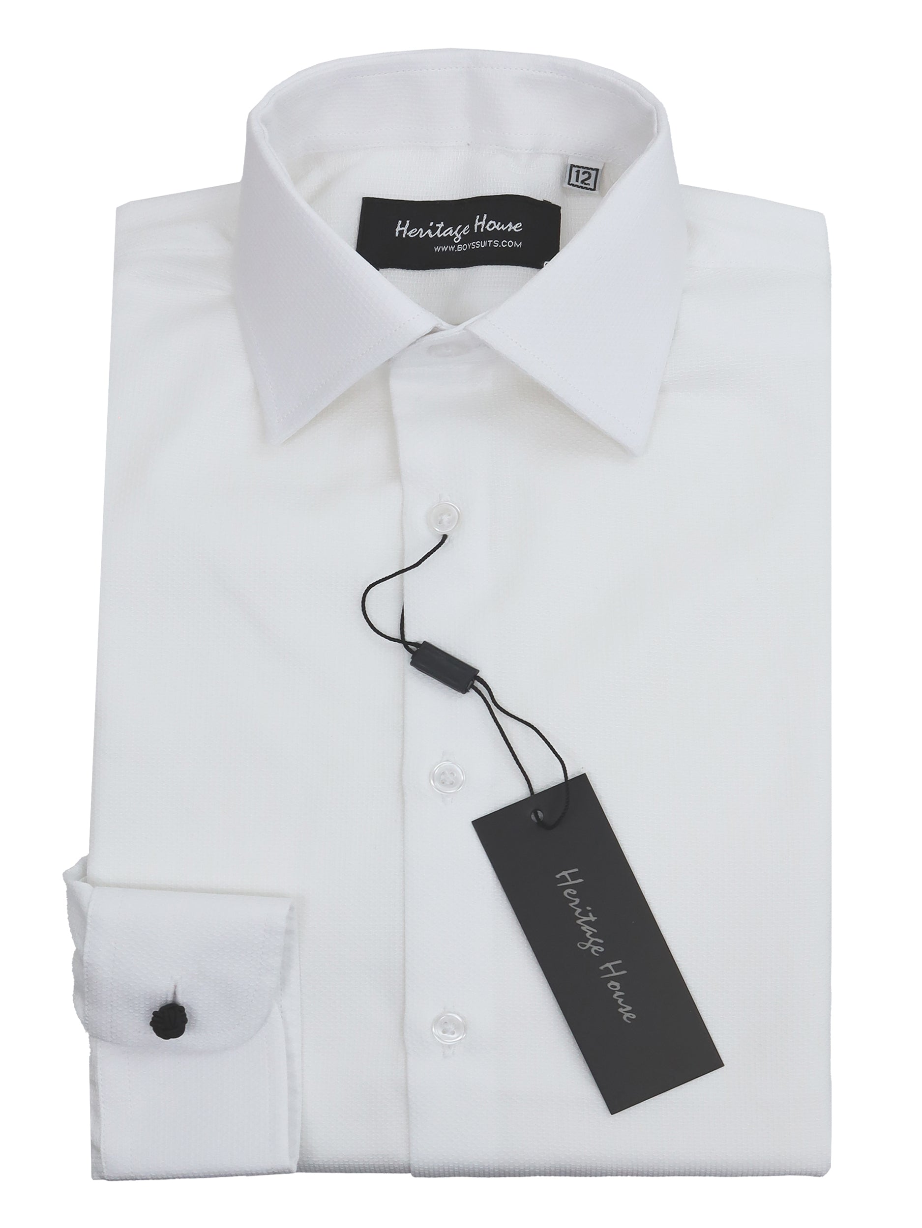 Heritage House 33383 Boy's Dress Shirt - Convertible Cuff - Basketweave - White