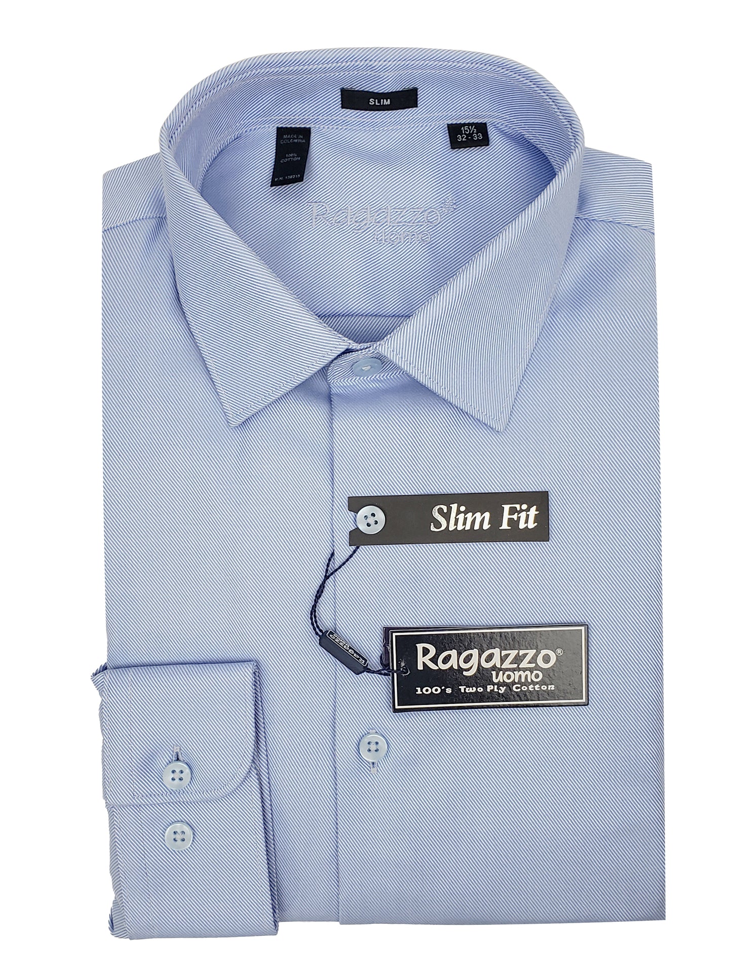 Ragazzo 34957 Young Men's Dress Shirt - Diagonal Tonal - Slim Fit - Sky Blue
