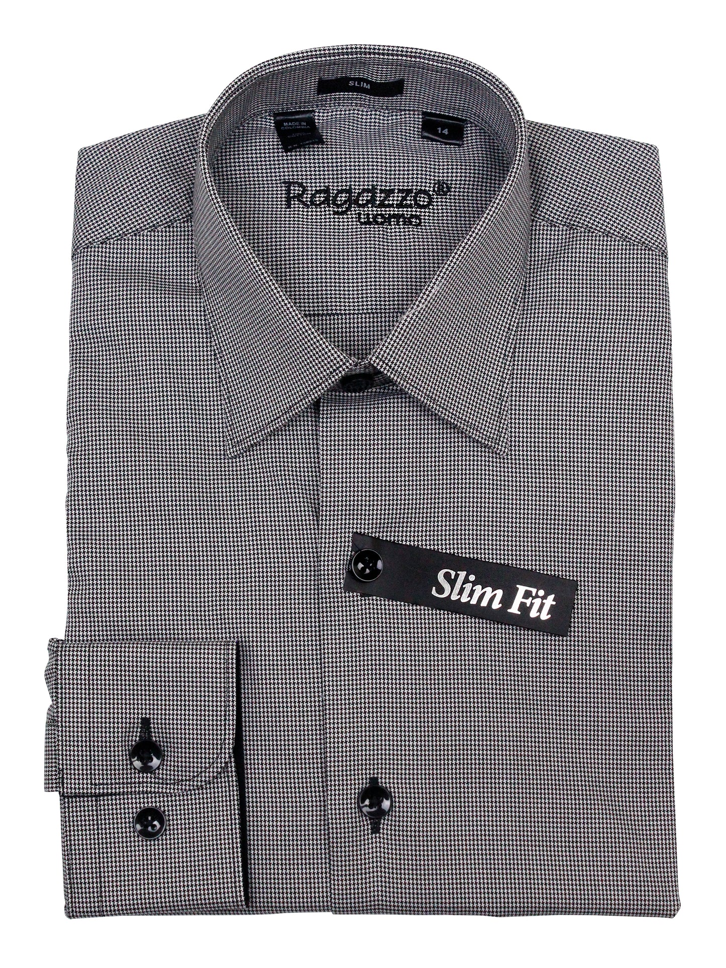 Ragazzo 35709 Boy's Slim Fit Dress Shirt - Check - Black