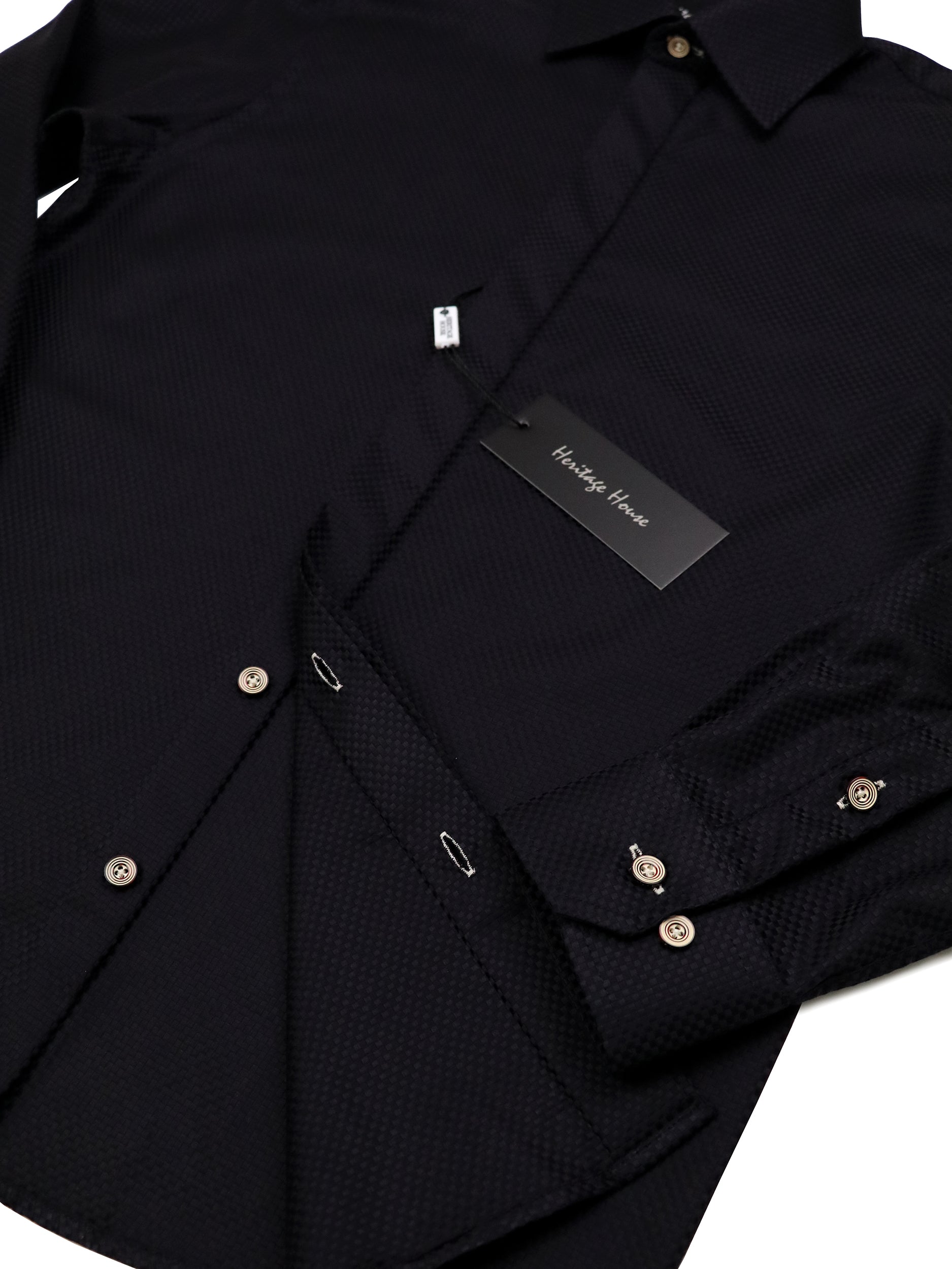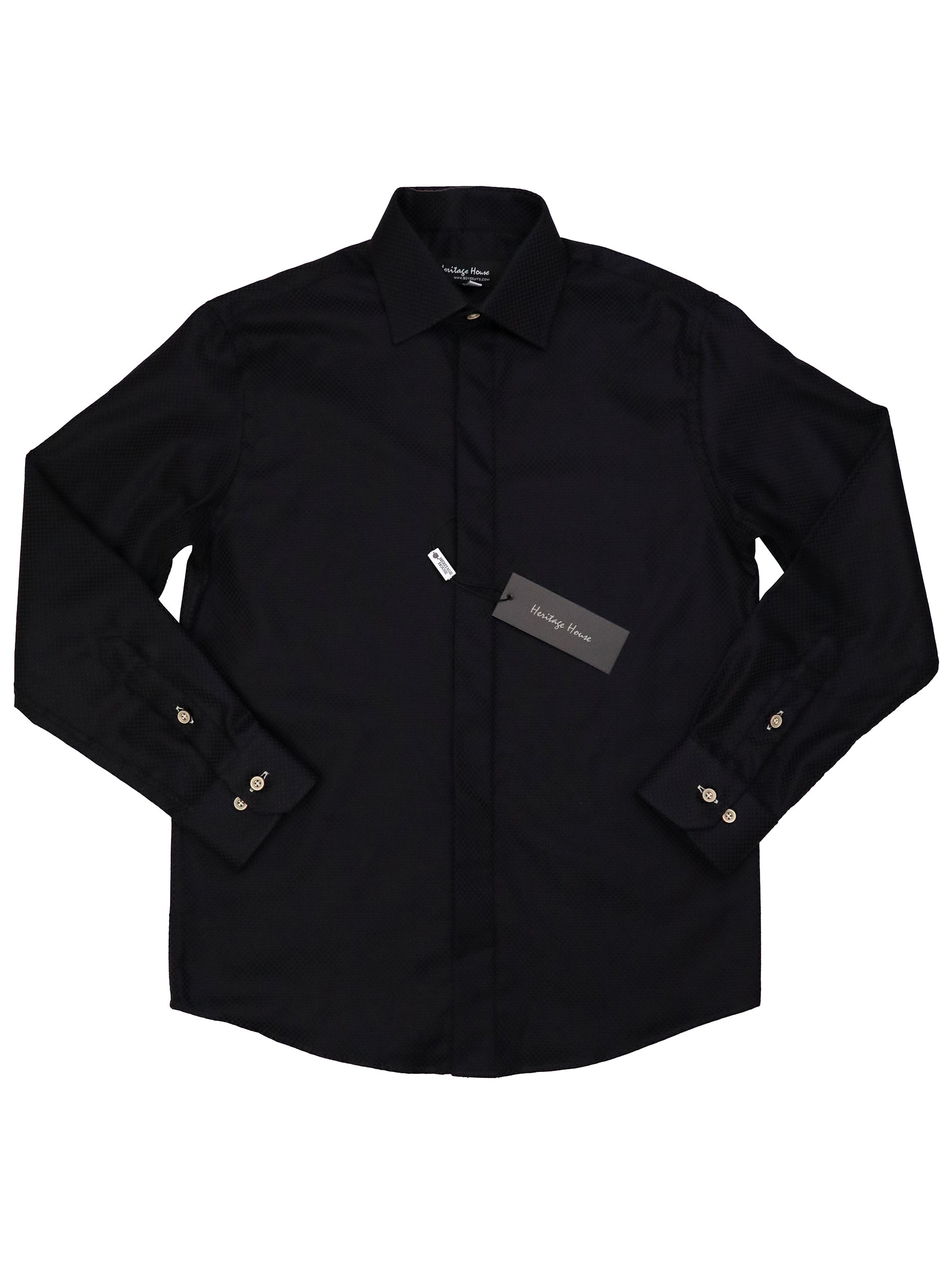 Features of the Heritage House 37848 Boy's Dress Shirt - Tonal Basketweave - Black: