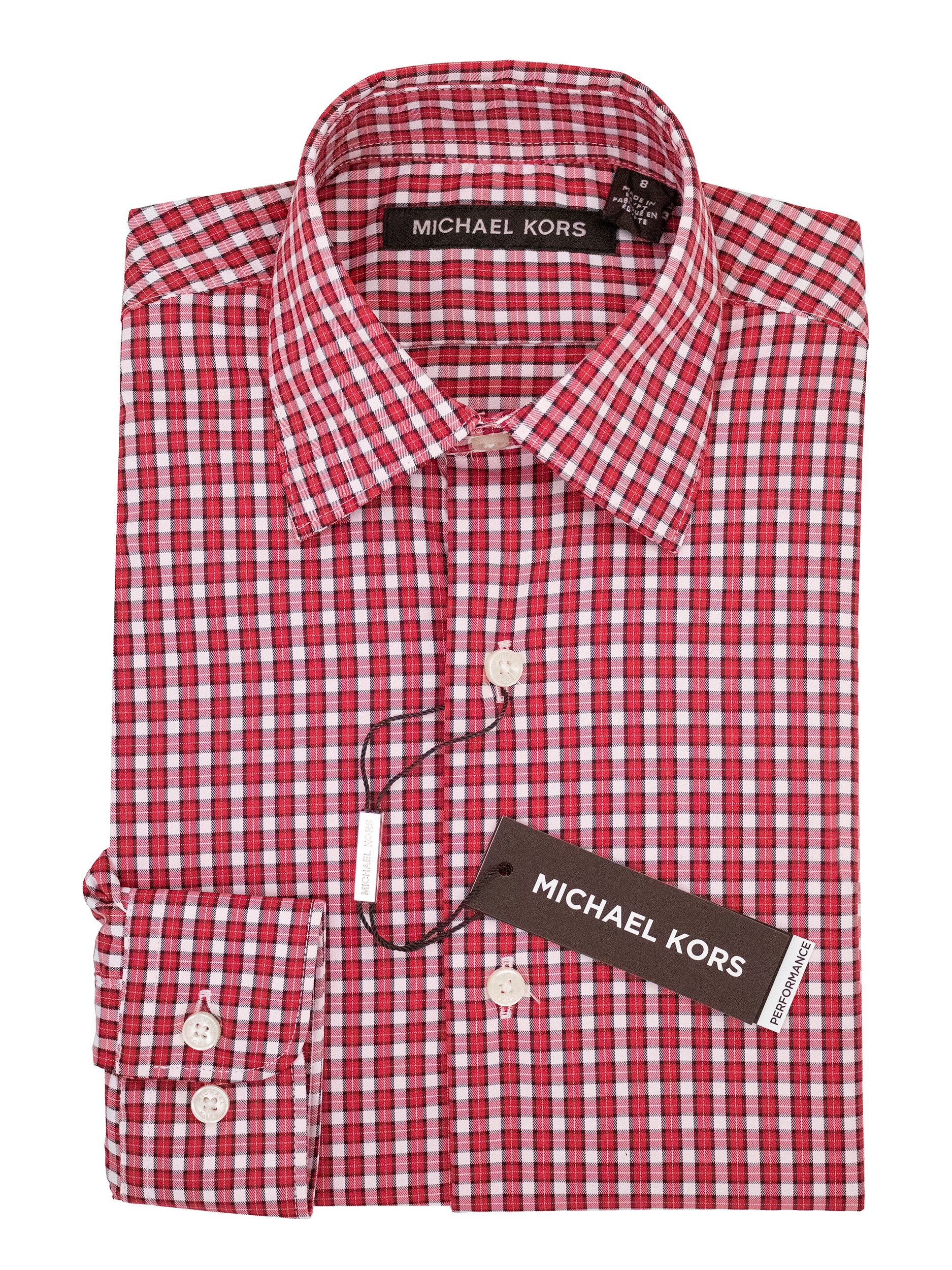Features of the Michael Kors 38364 Boy's Dress Shirt - Check - Red/Black: