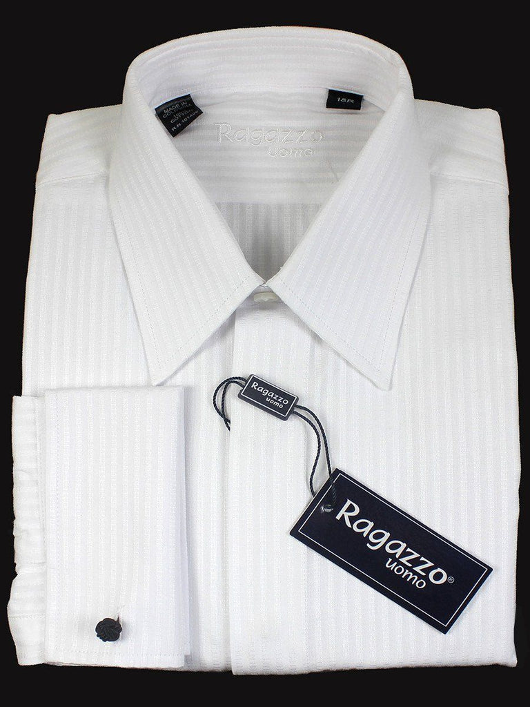 Ragazzo 7233 100% Cotton Boy's Dress Shirt - Tonal Stripe - White