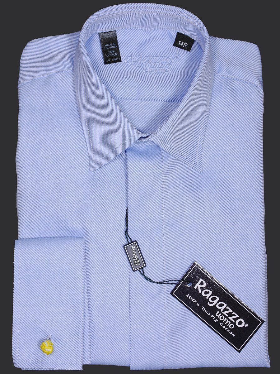 Features of the Ragazzo 8231 Boy's Dress Shirt - French Cuff - Tonal Diagonal Weave - Sky Blue: