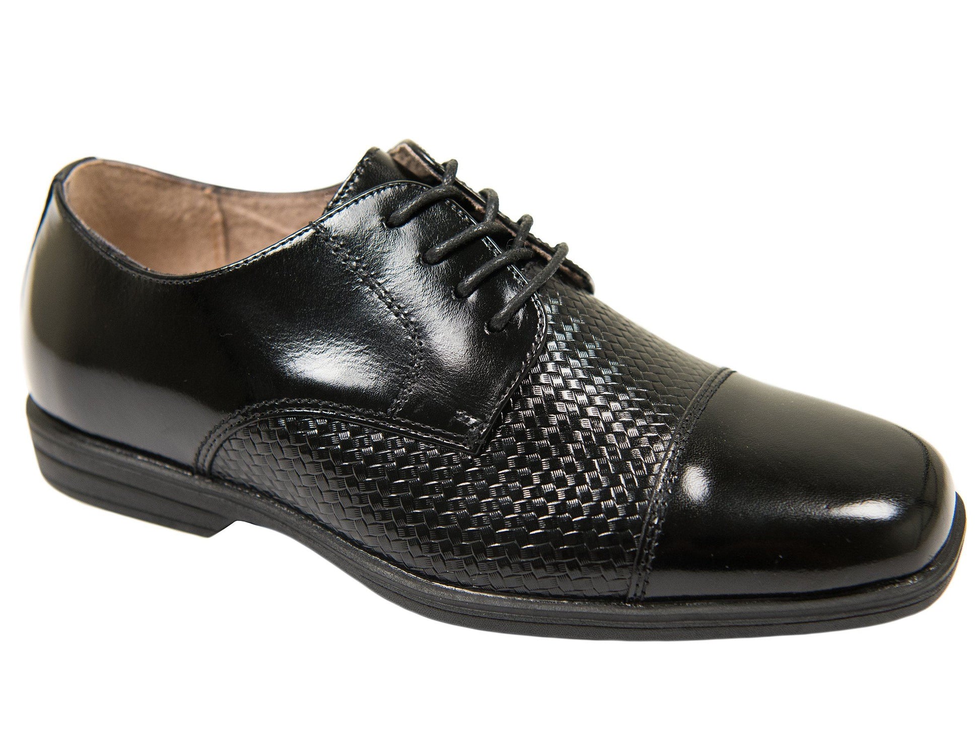 Florsheim 27568 Boy's Shoe-Black-Cap Toe Oxford-Weave Print