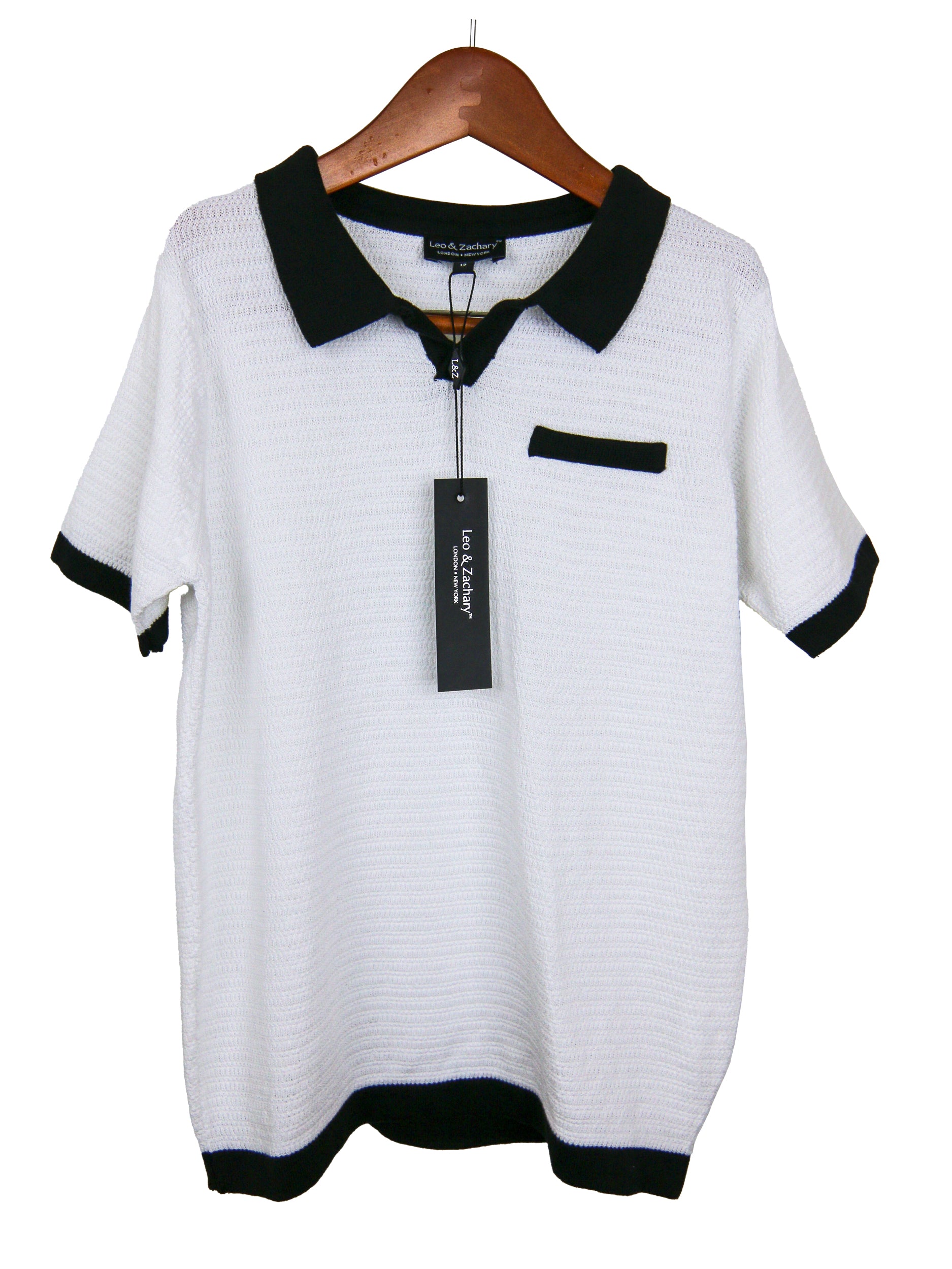 Leo & Zachary 33182 Boy's Short Sleeve Knit - Johnny Collar- White