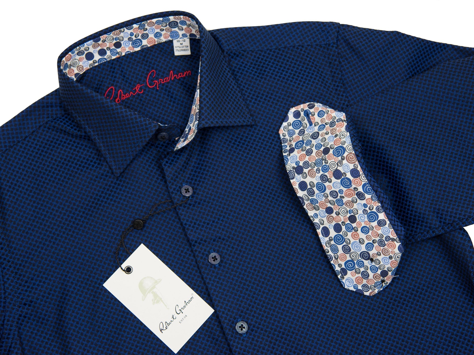 Features of the Robert Graham 27648 97% Cotton / 3% Spandex Boy's Sport Shirt - Jacquard - Blue
