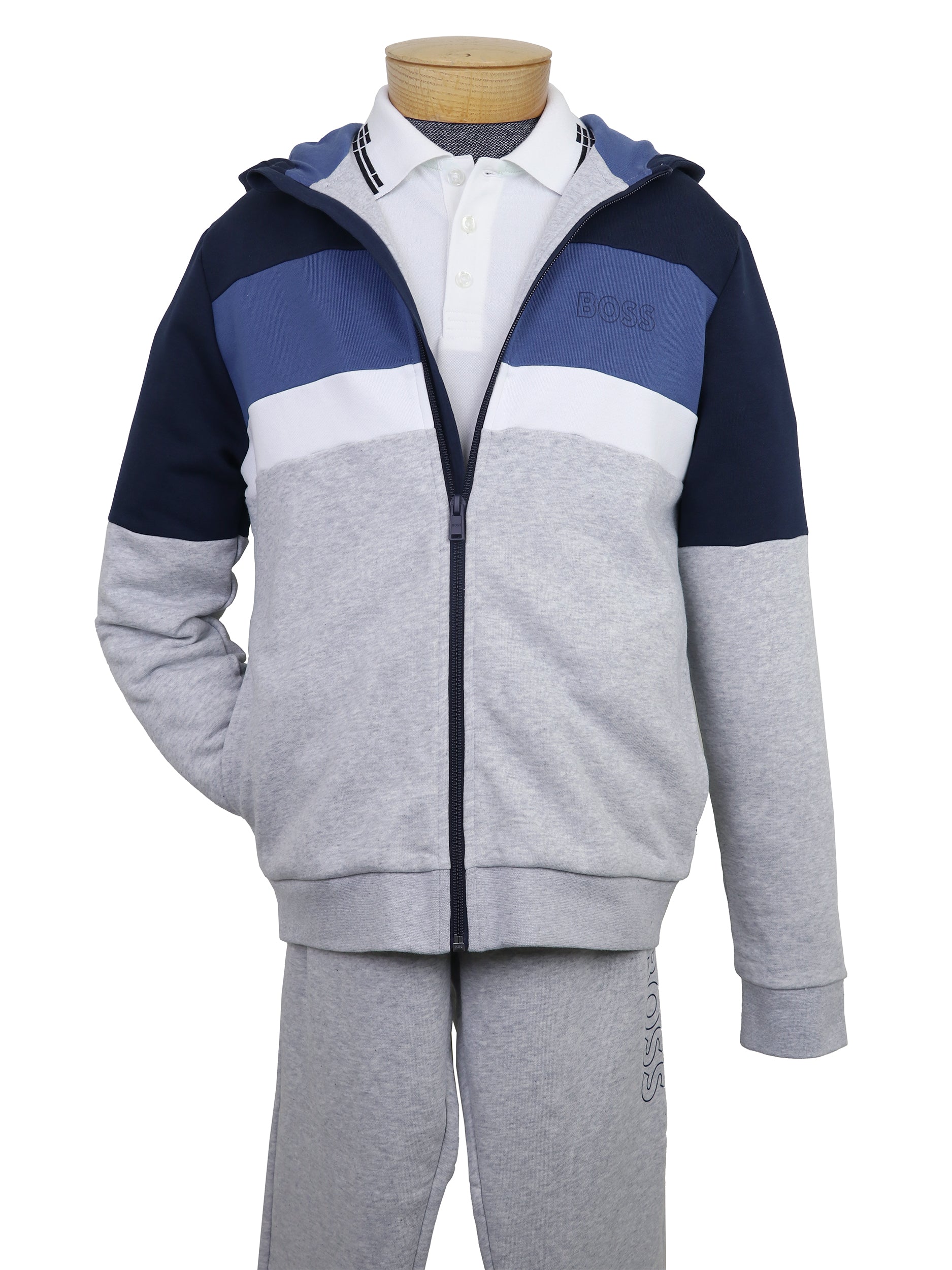 Features of the Boss 37389 Boy's Sweatsuit Set - Color Block - Chine Grey: