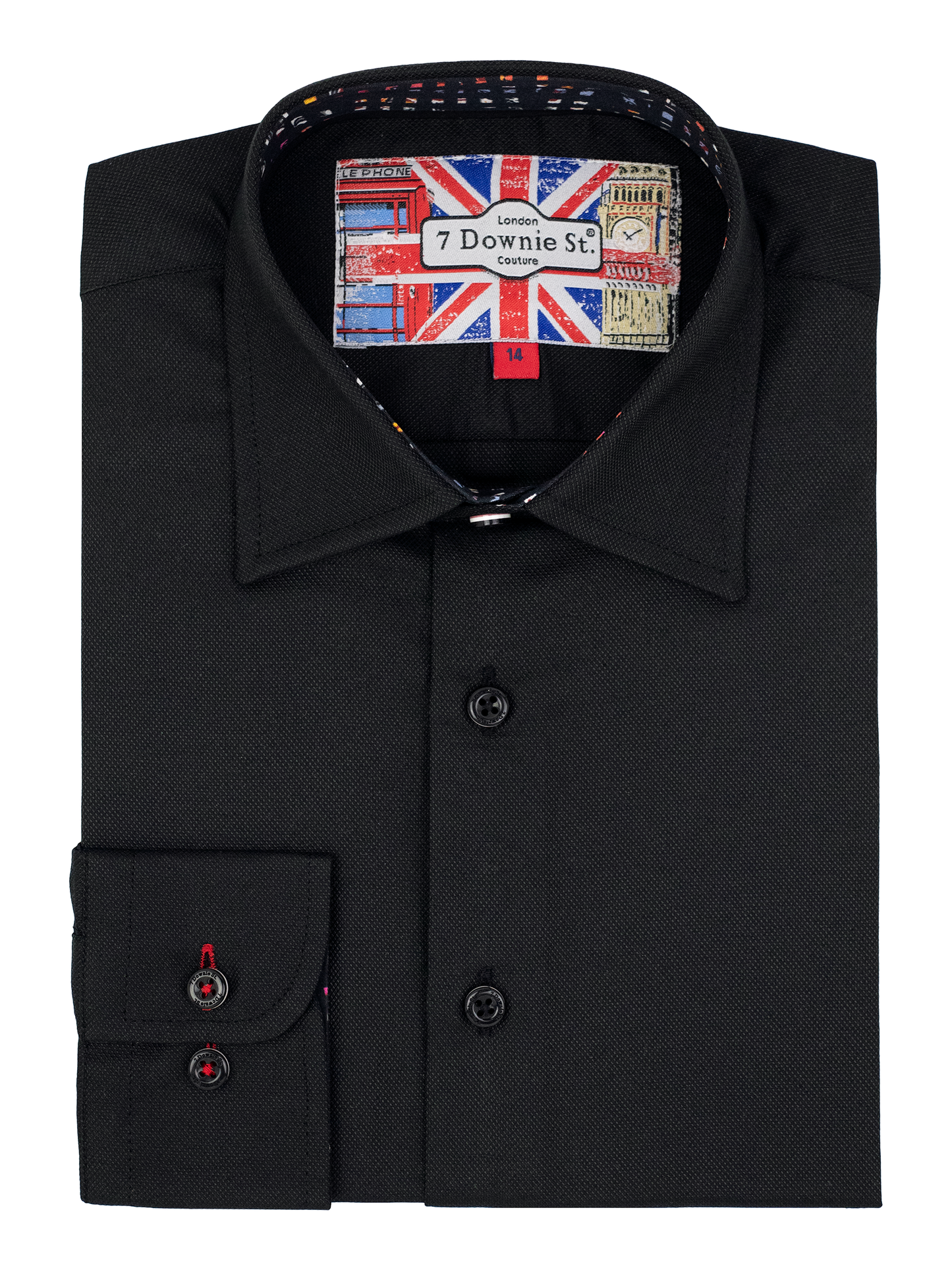 7 Downie St. 39187 Boy's Long Sleeve Sport Shirt - Tonal - Black