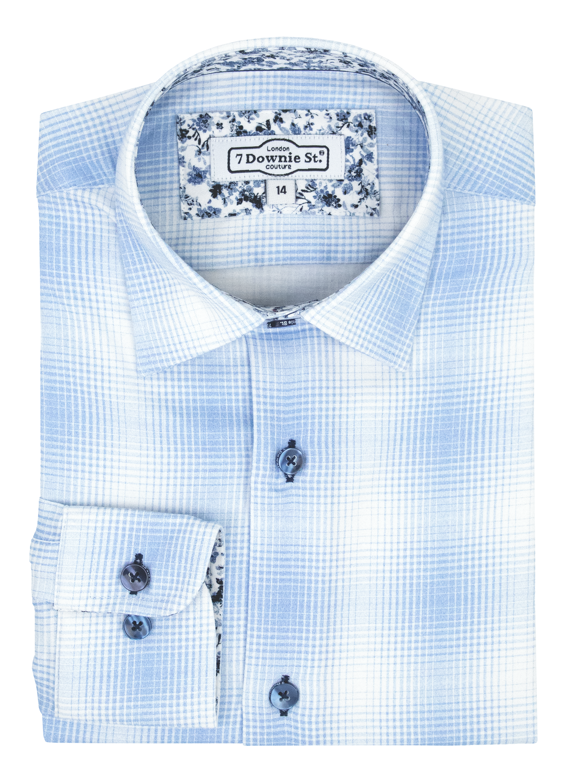 Features of the 7 Downie St. 39646 Boy's Long Sleeve Sport Shirt - Gradient Plaid - Blue: