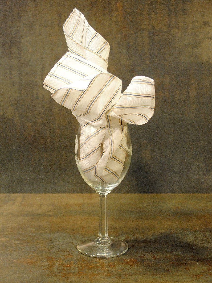 Boy's Pocket Square 16418 White/Tan/Blue Stripe