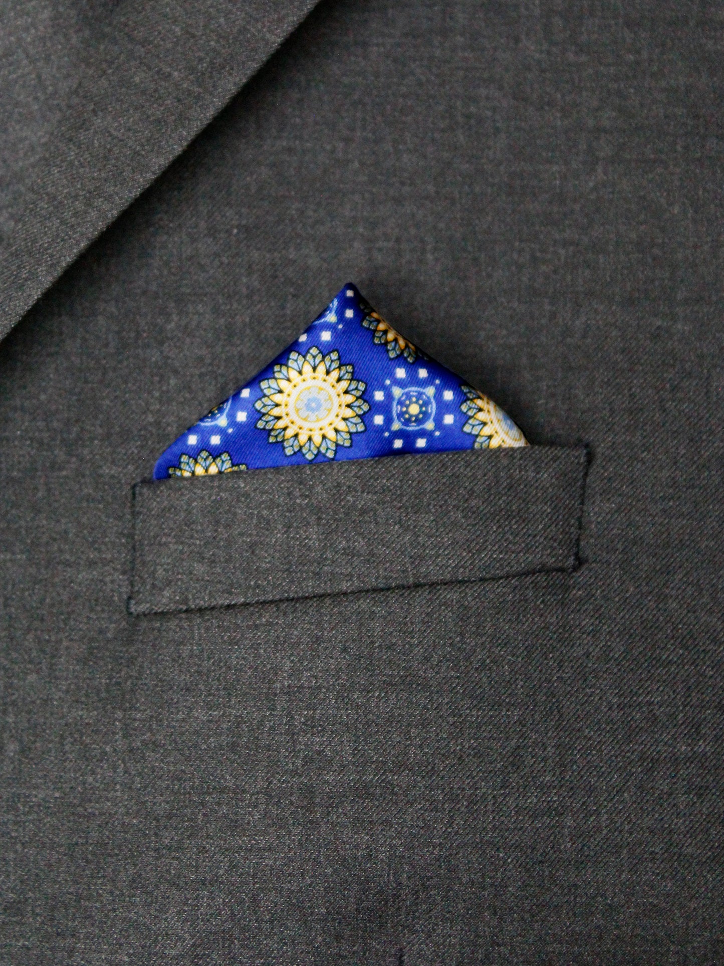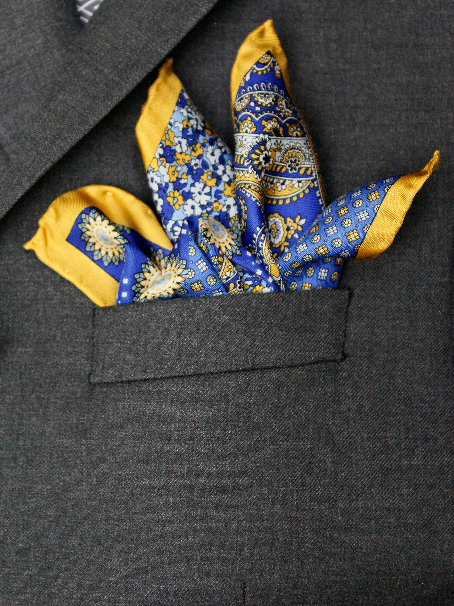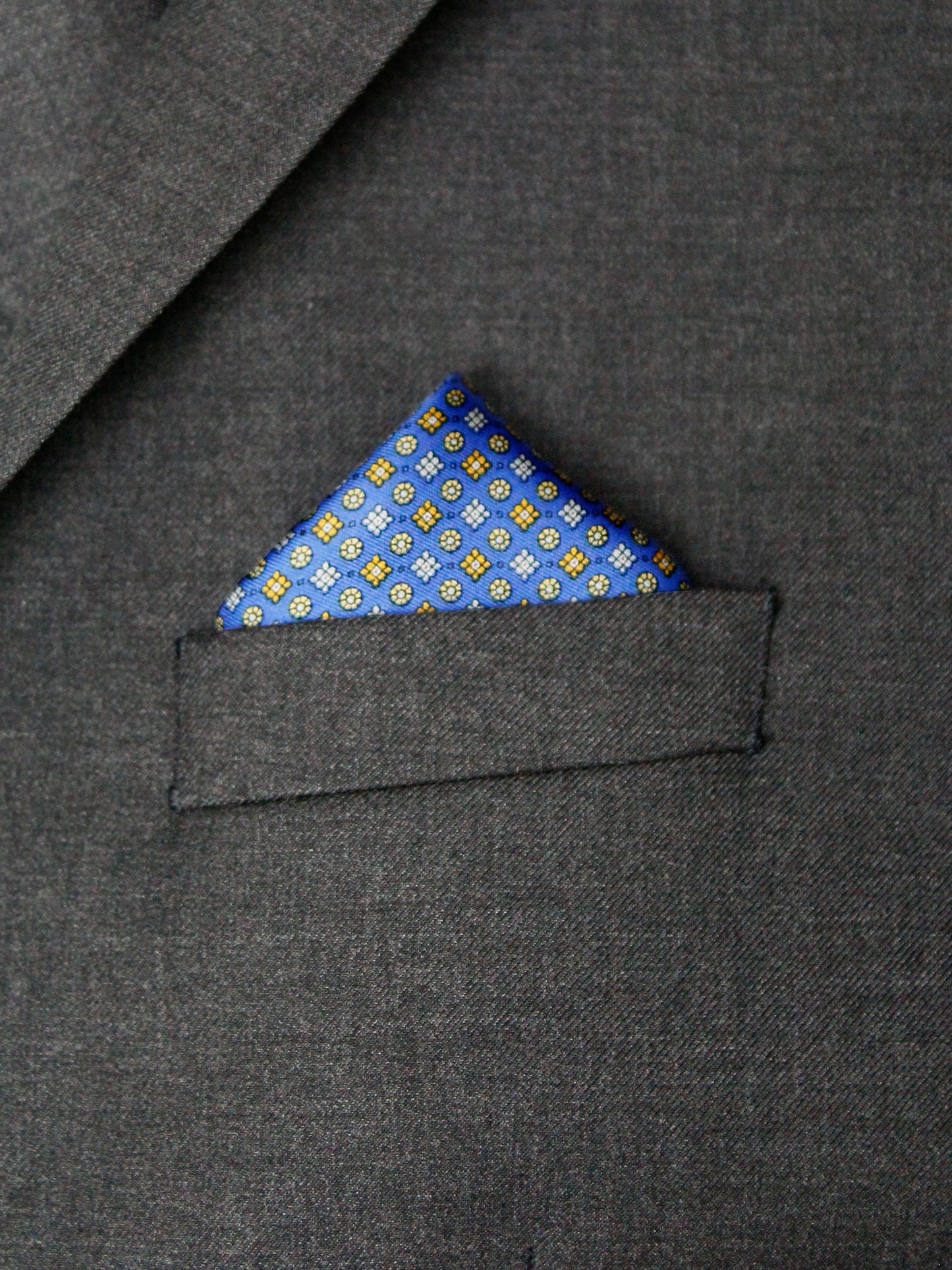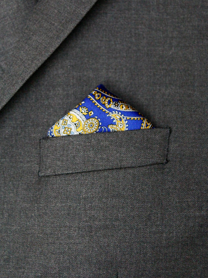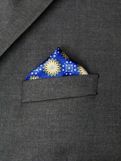100% Silk Pocket Square- Neat - Yellow/Blue