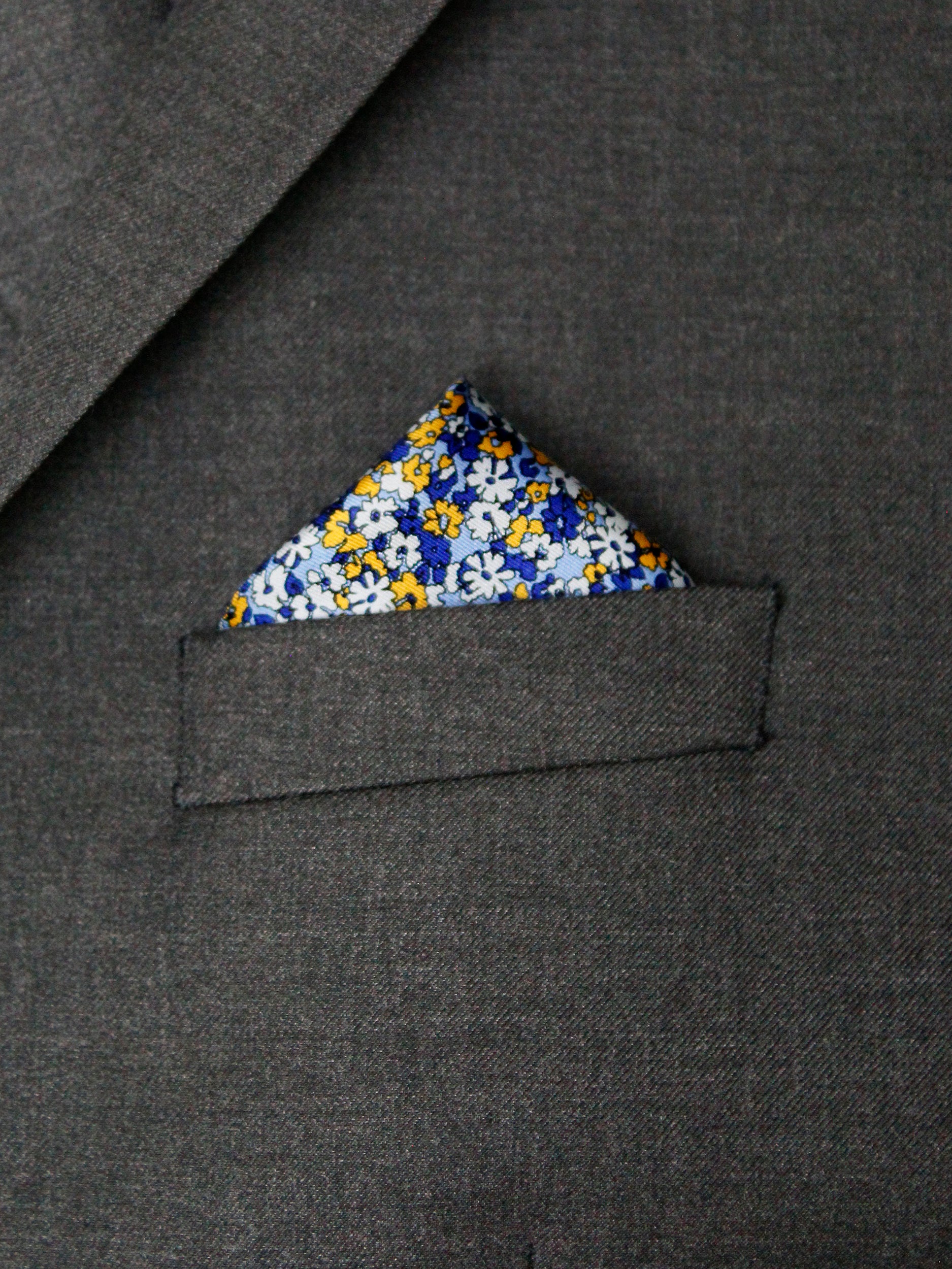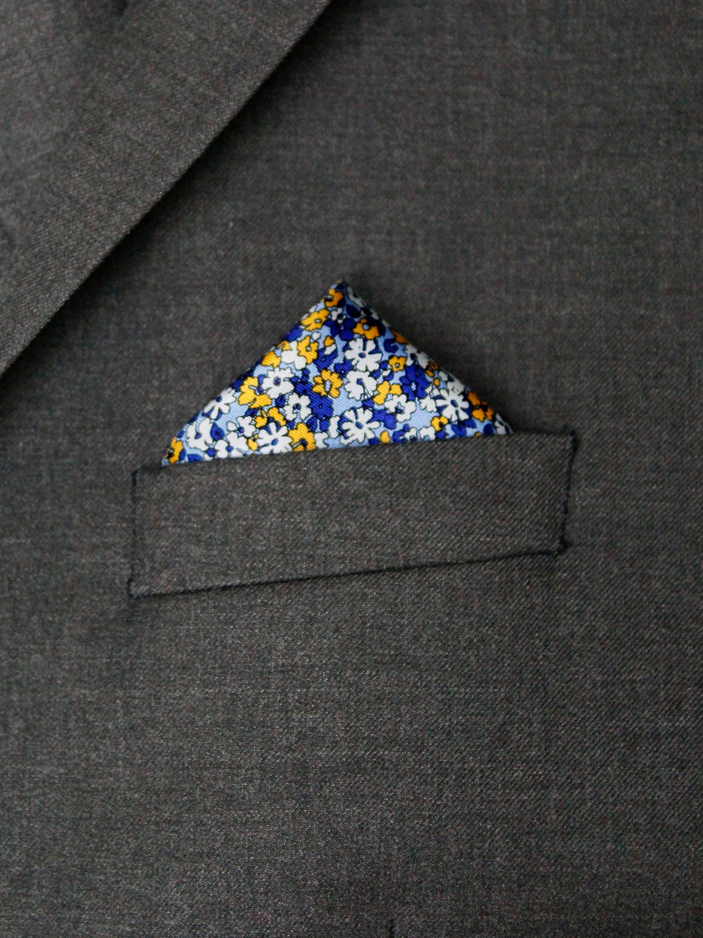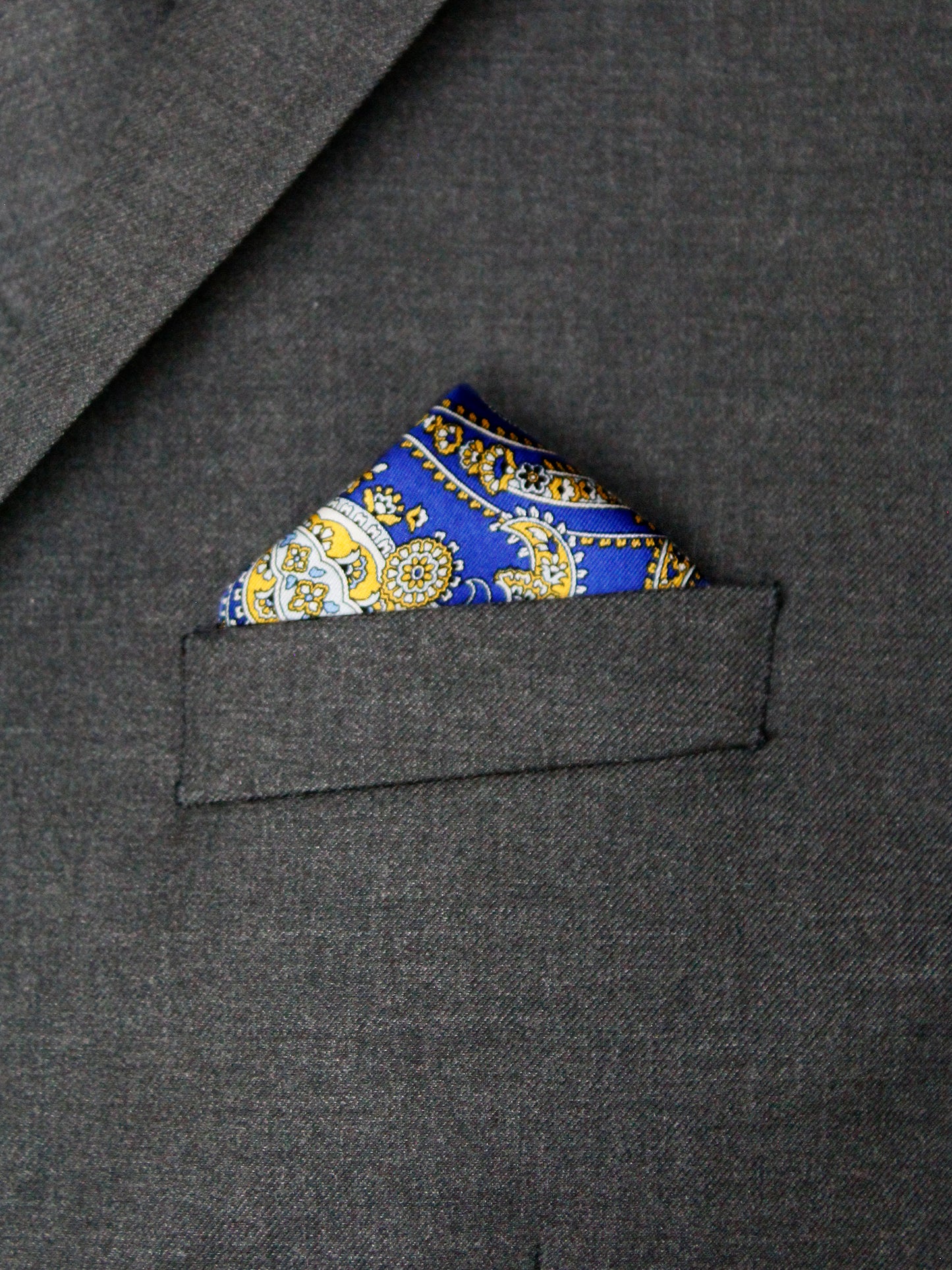 100% Silk Pocket Square- Neat - Yellow/Blue
