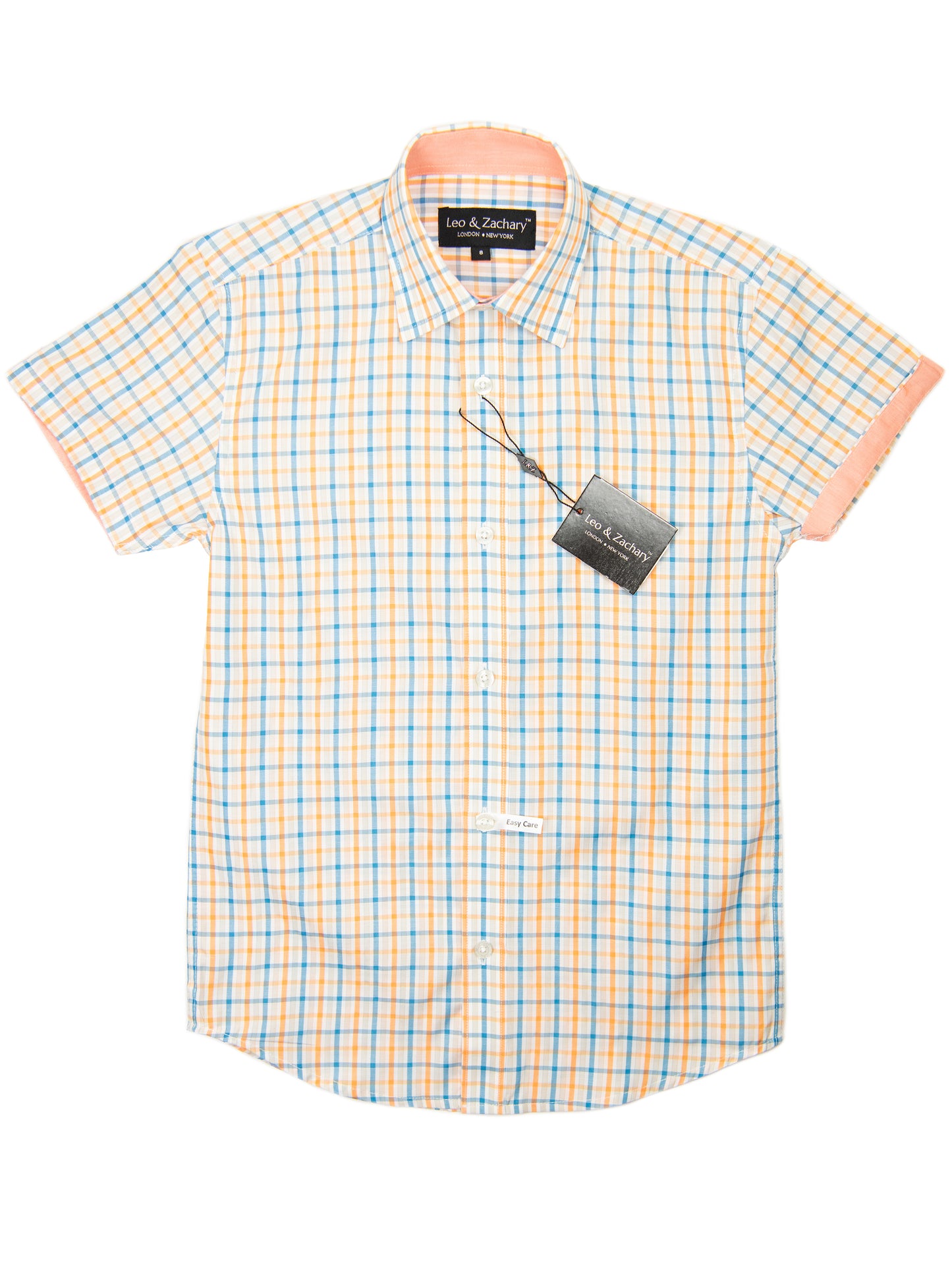 Leo & Zachary 28915 Boy's Short Sleeve Sport Shirt-Orange/Blue-Plaid