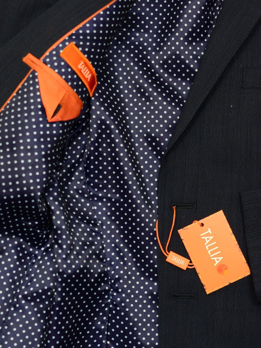 Show off his most charming and confident side with the Tallia 20914 100% Wool Boy's 2-Piece Suit. In a classic navy color, and weave style, this 100% wool boy's 2-piece suit is a great pick for every special event. A skinny contemporary fit, and a notched skinny lapel to ensure he'll look his best. The 2-button single breasted jacket is fully lined, and features polka dot pattern and orange piping. A functional breast pocket, 2 hip flap pockets, 2 inside breast pockets, and an inside cellphone pocket offer ample room for his necessities. The Pants are in a plain front style, with a skinny tapered leg and a short rise. They include quarter top pockets, a button through besom back pocket, a split waistband with approximately 1.5 inches of let out room, and an unfinished bottom for easy alteration. Dry Clean Only. By Tallia, a leader among boy's fashion globally.