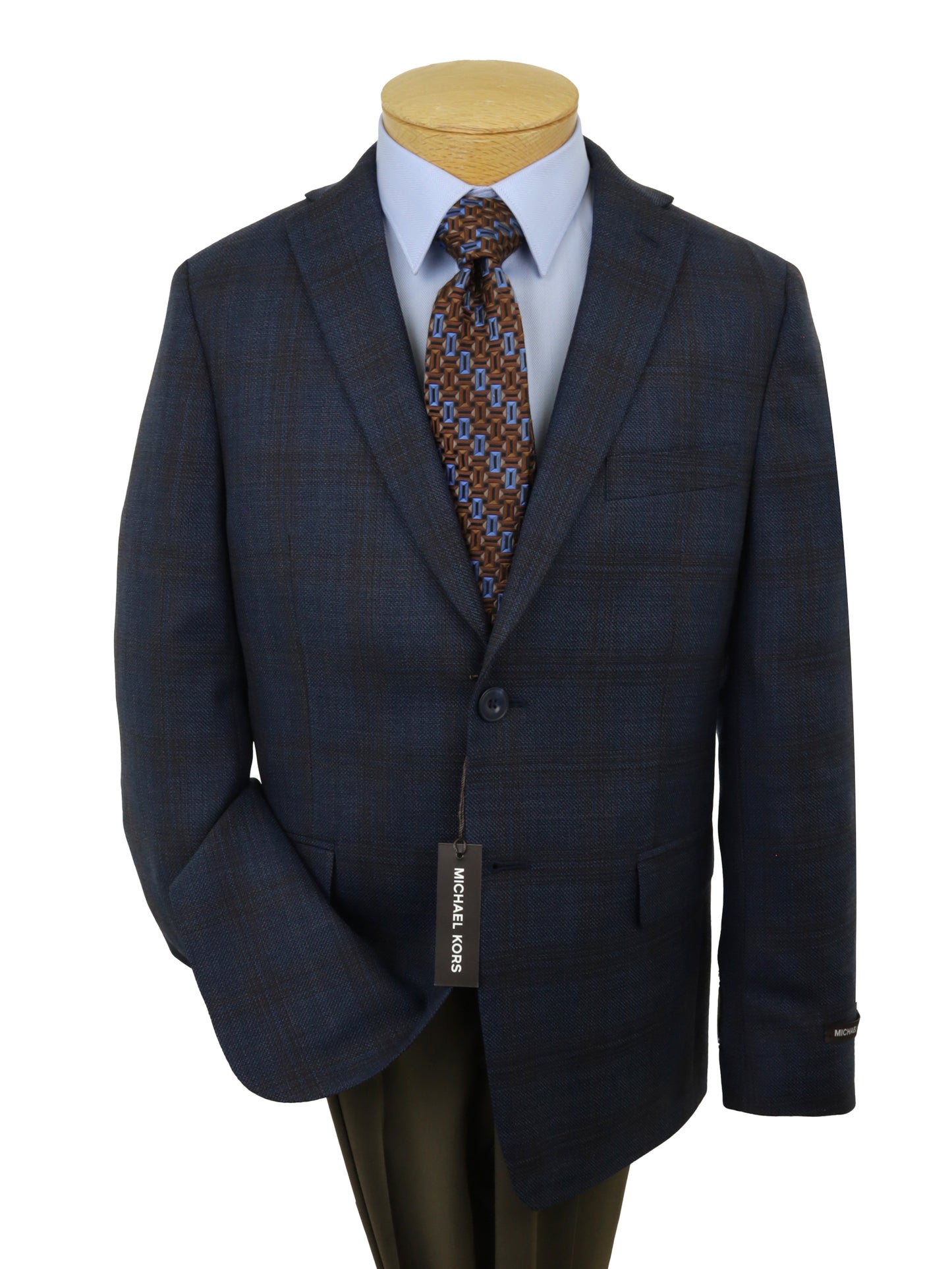 Features of the Michael Kors 34690 Boy's Sport Coat - Classic Fit Plaid Pattern Sportcoat - Navy/brown: